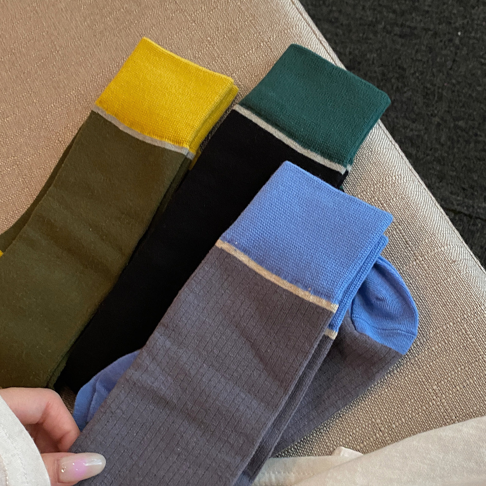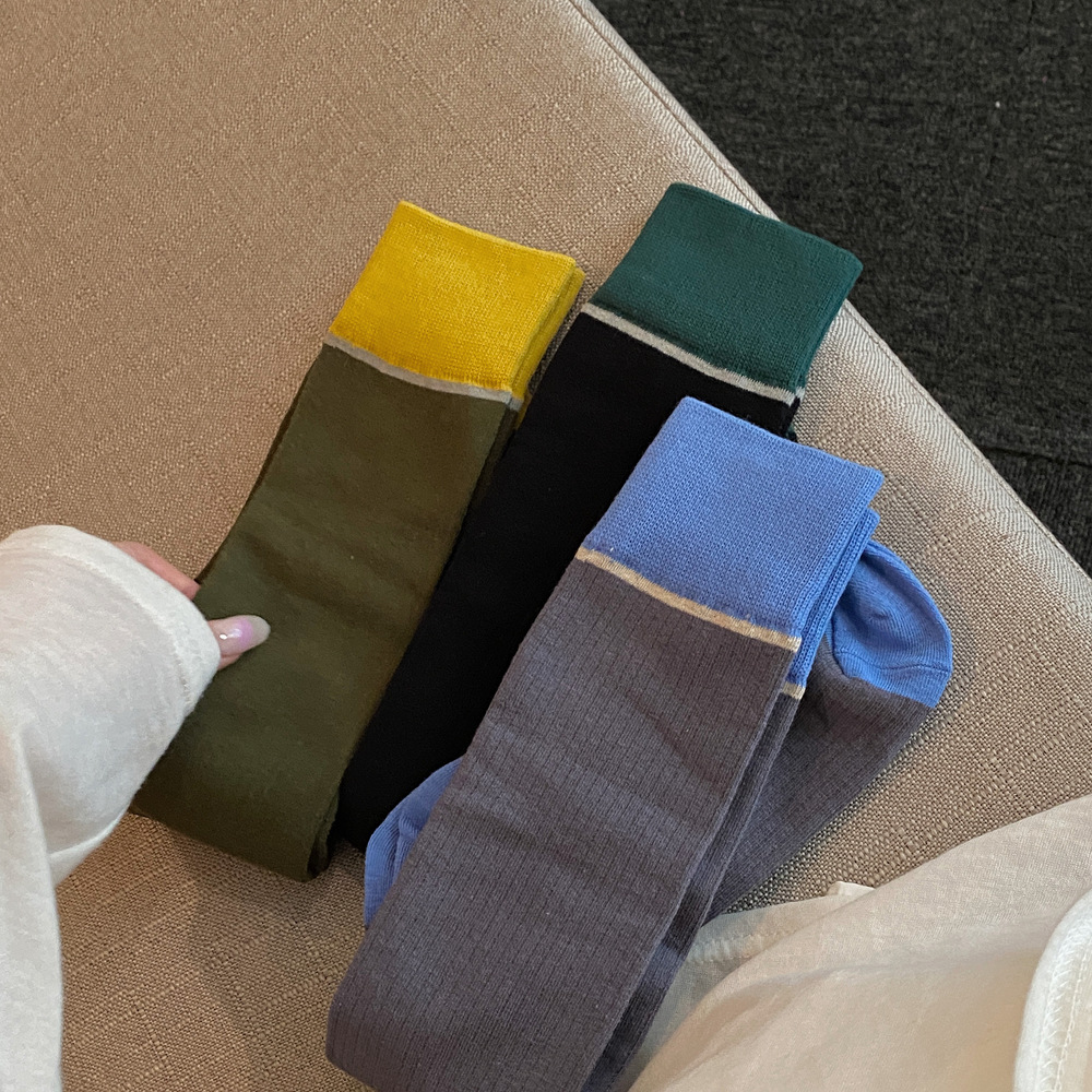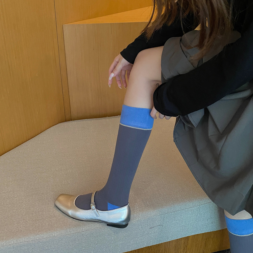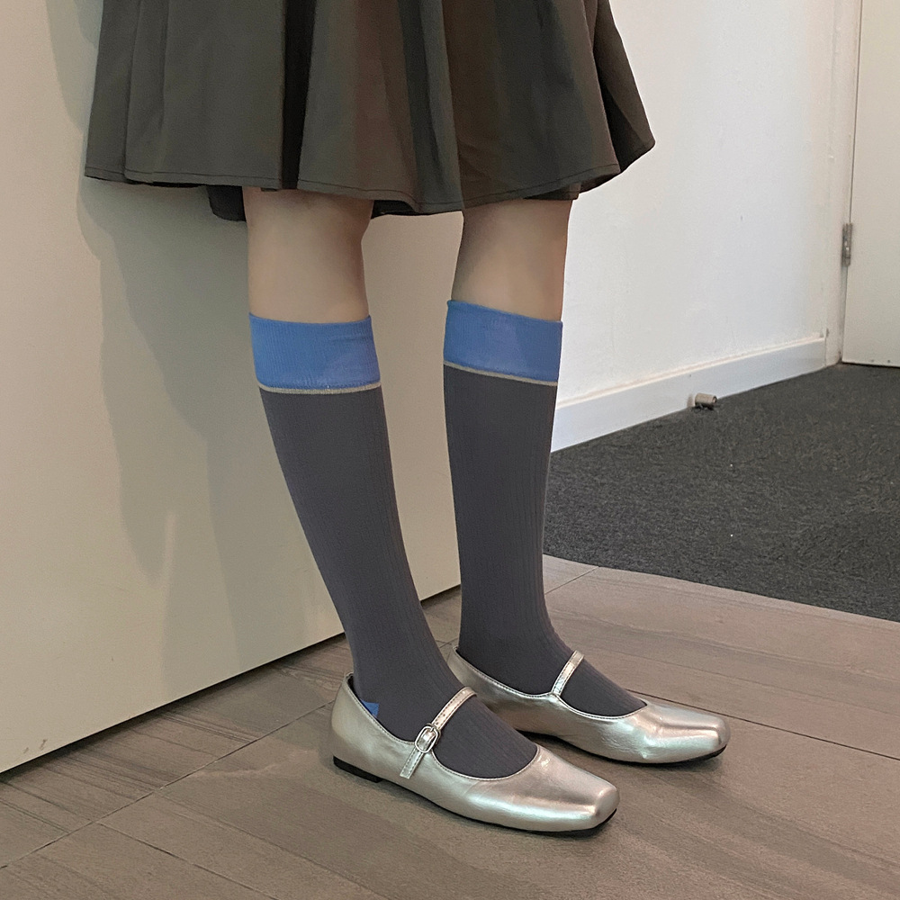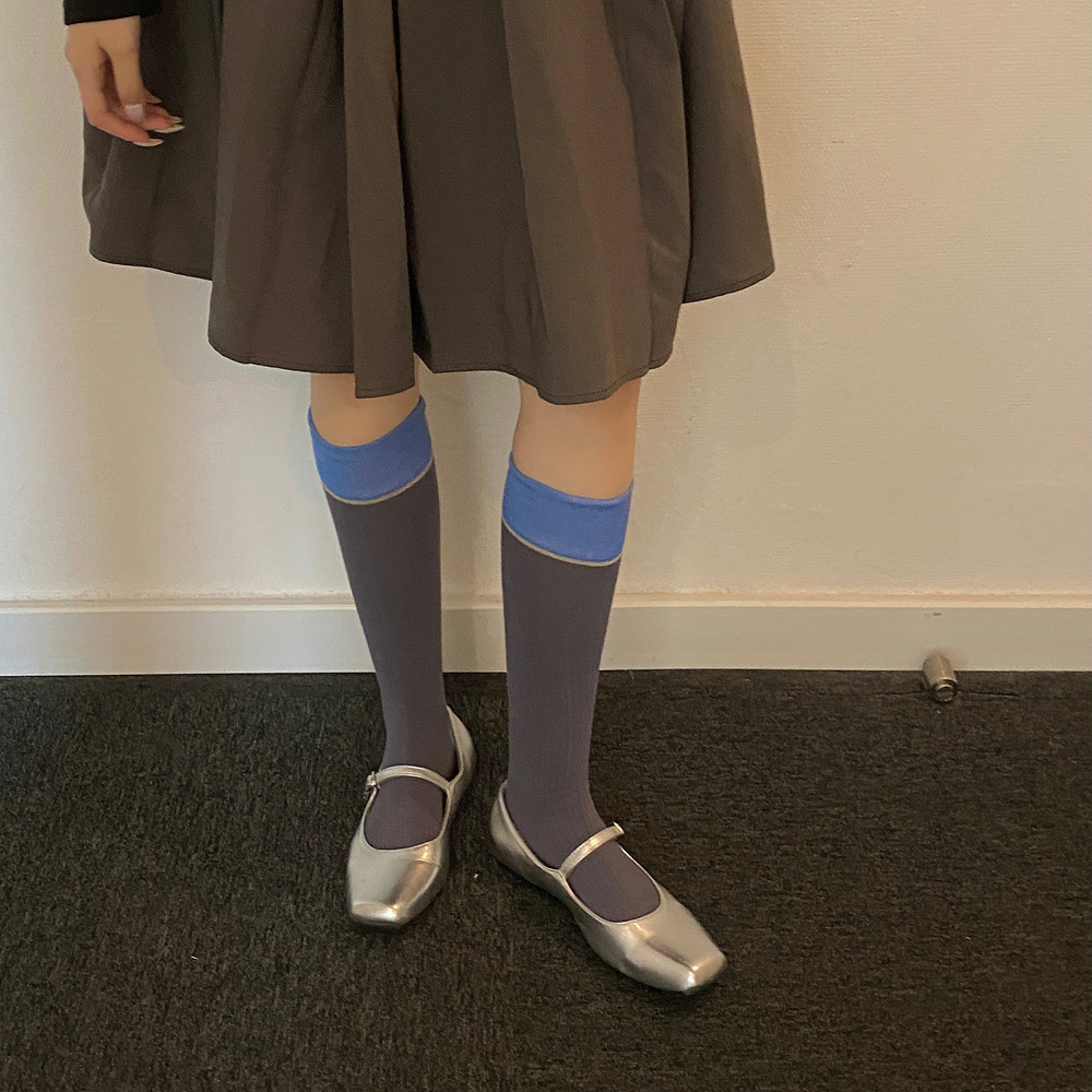 ins 한국 동대문 배색 배색 종아리 양말 그레이 니삭스 여성 양말 베이직 다용도 컬리지 스타일