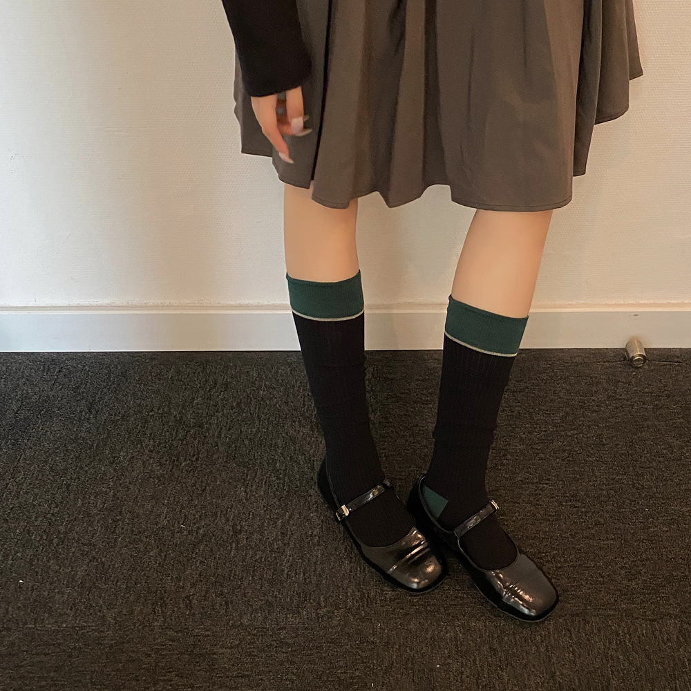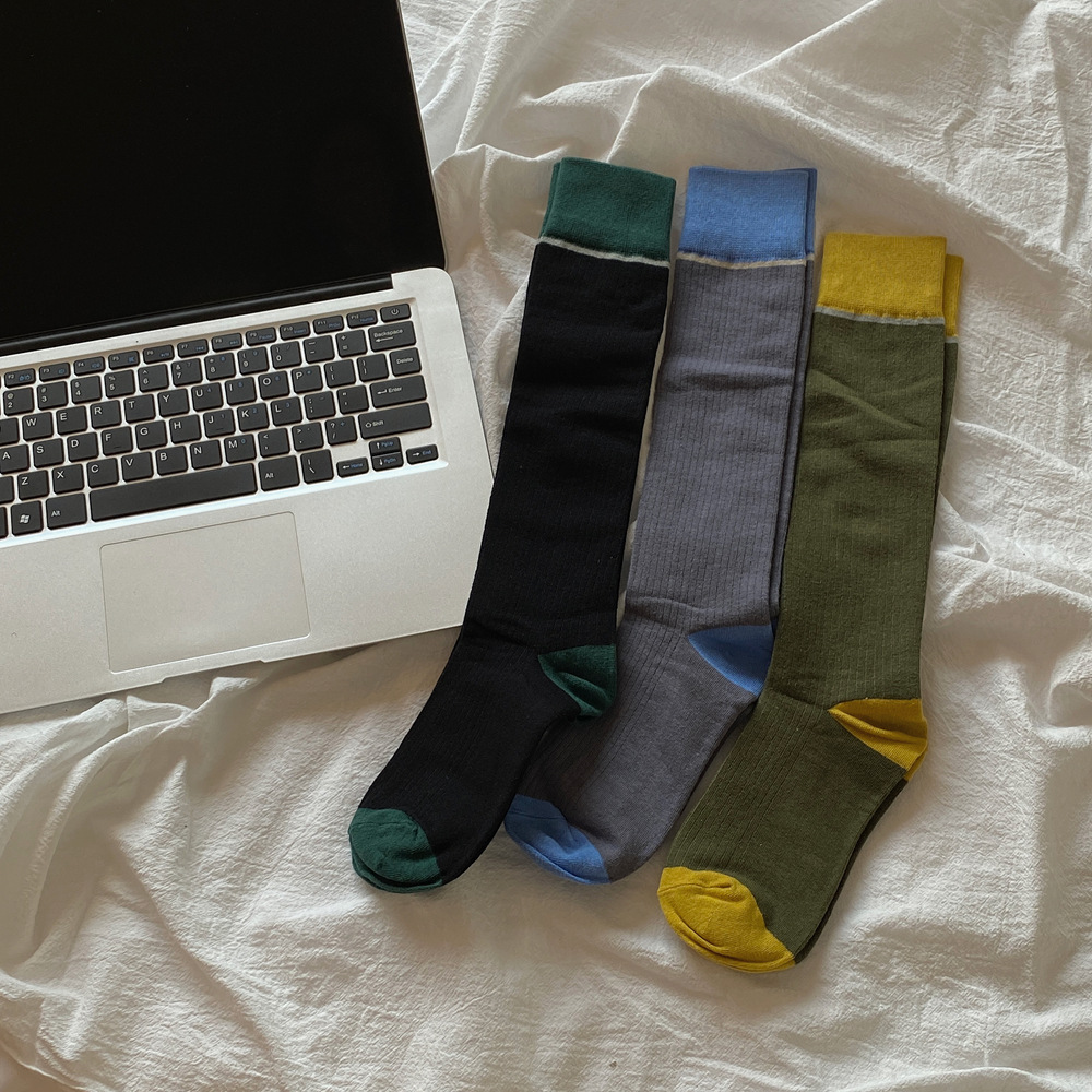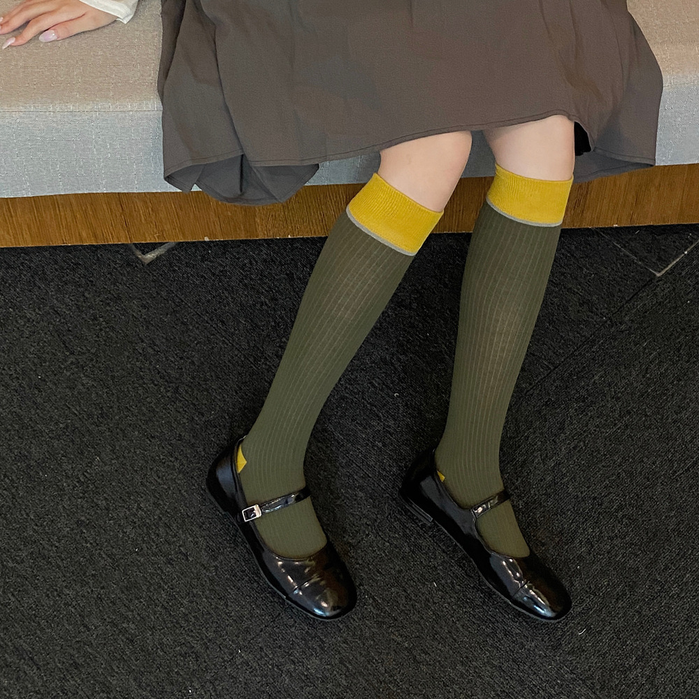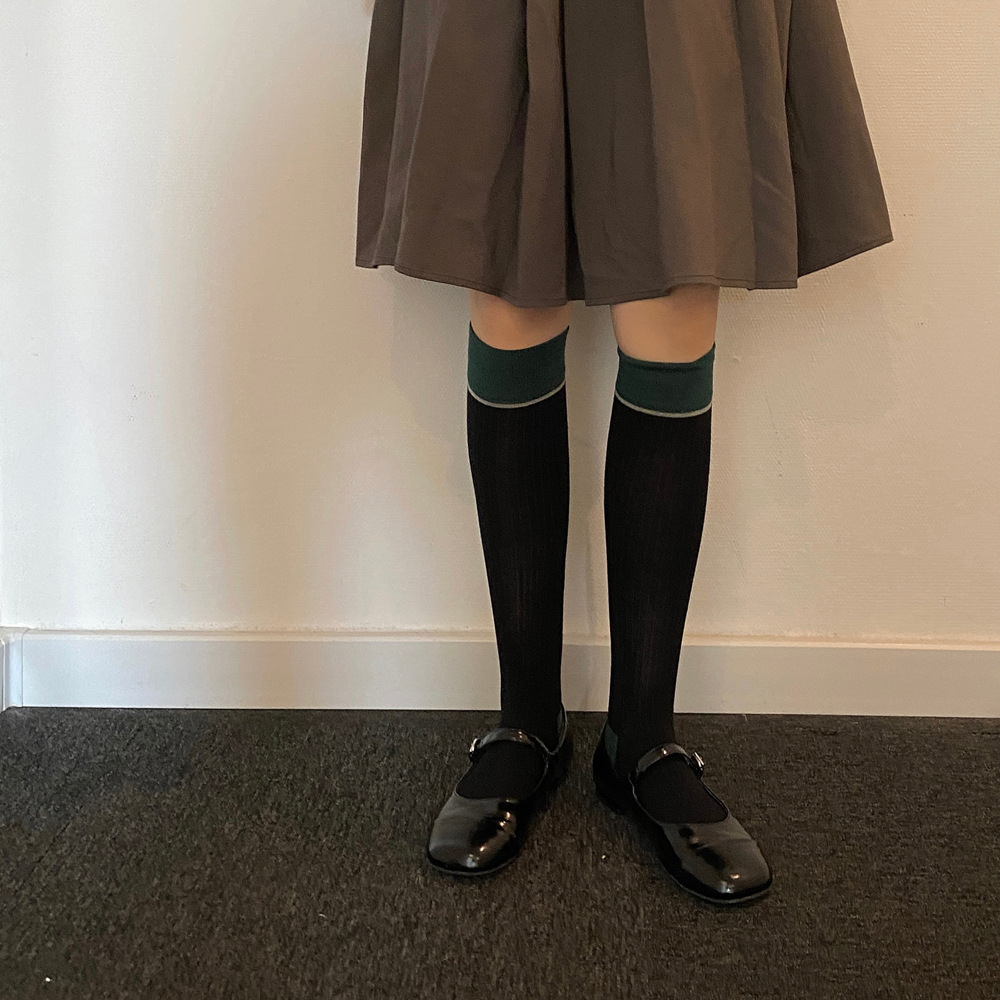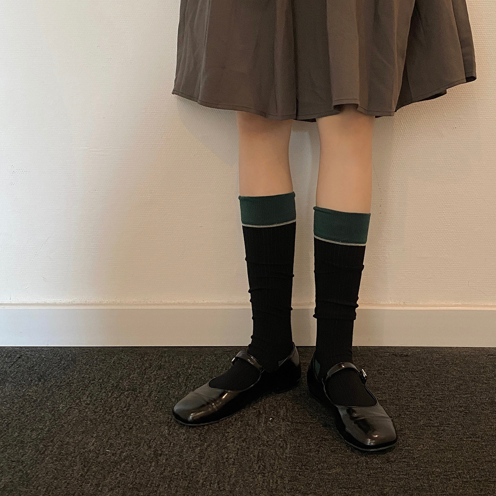 ins 한국 동대문 배색 배색 종아리 양말 그레이 니삭스 여성 양말 베이직 다용도 컬리지 스타일
