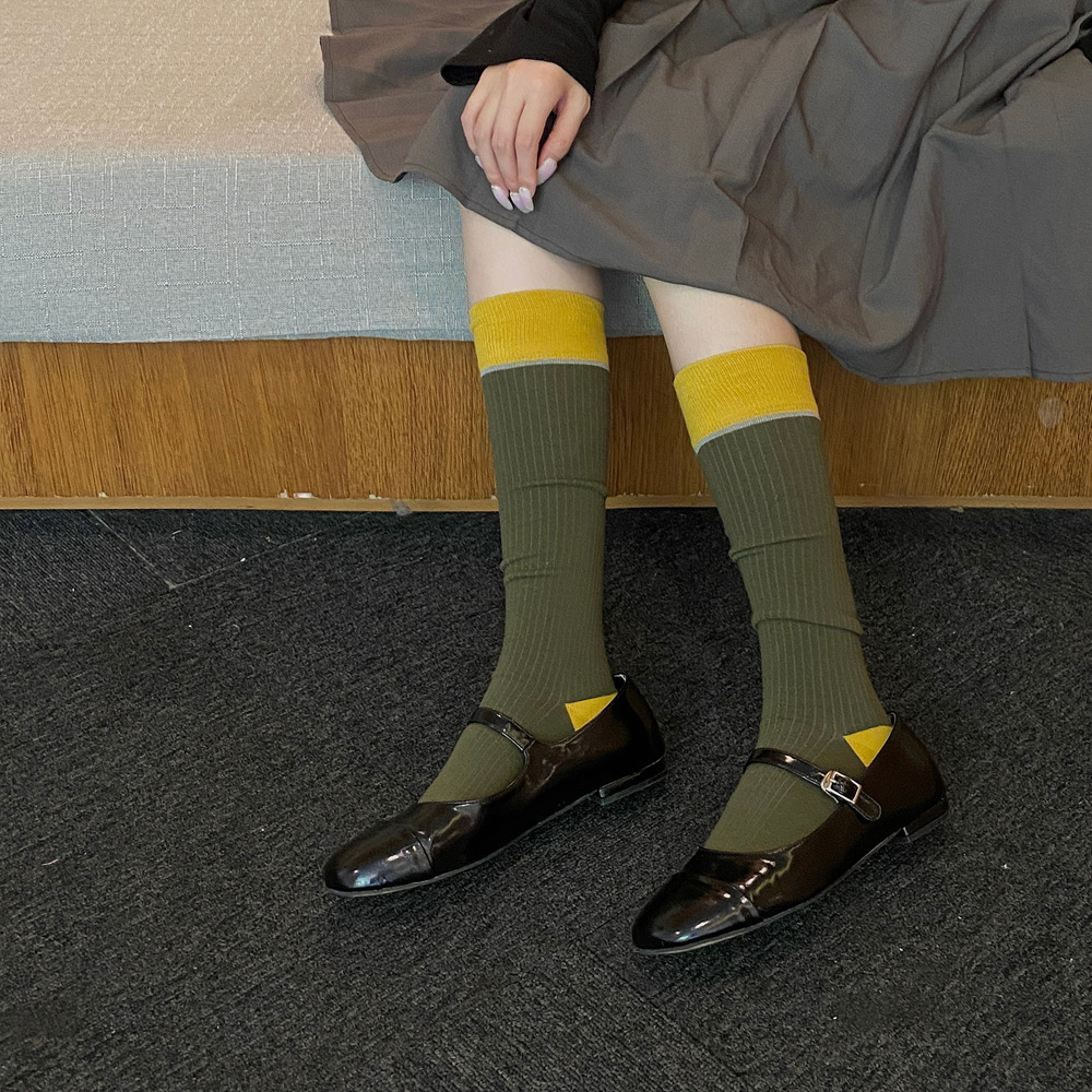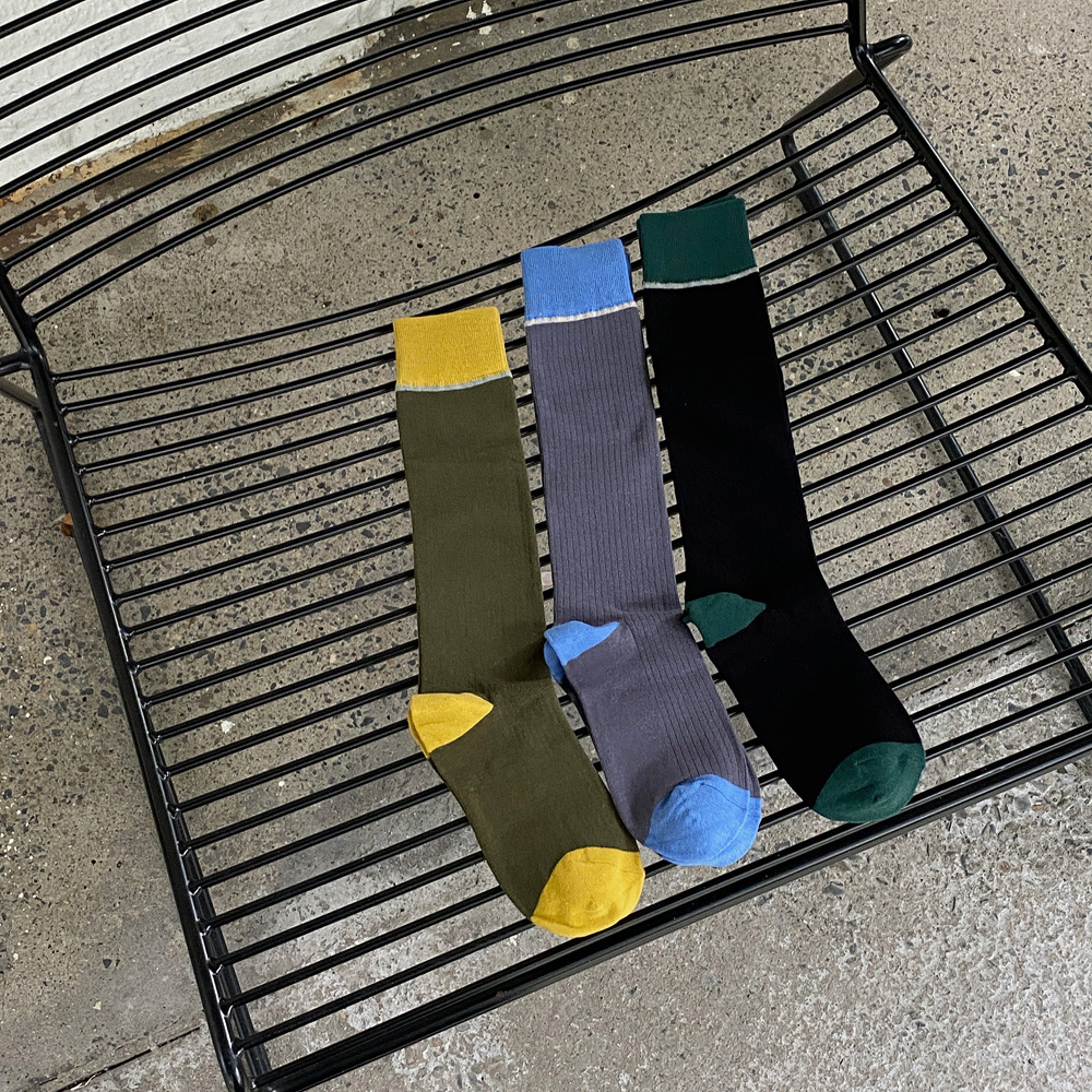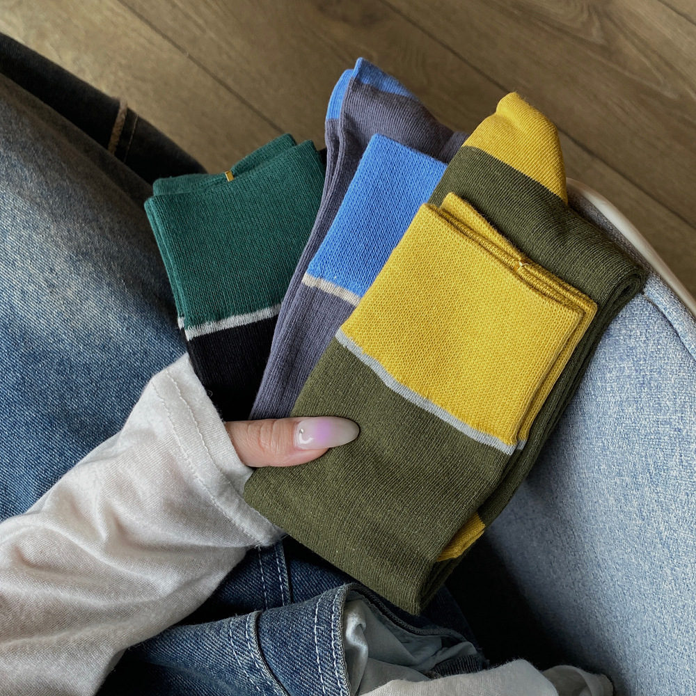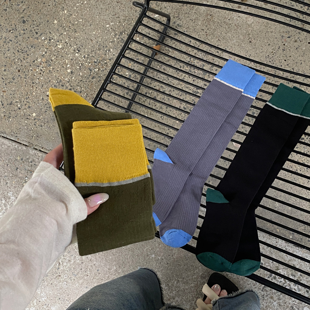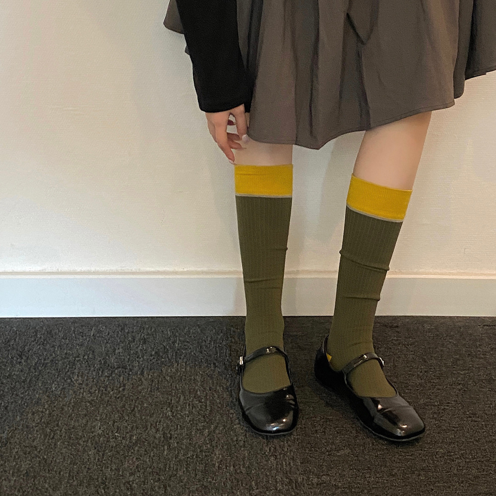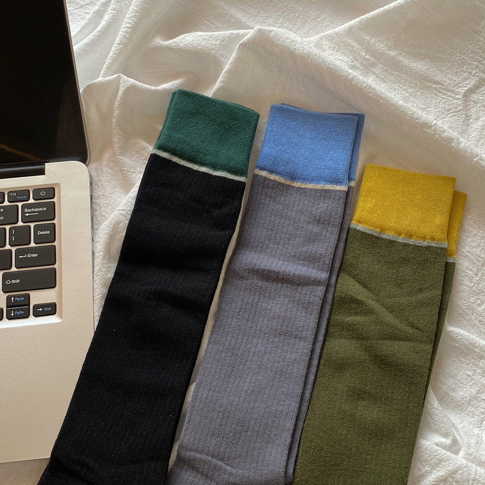 ins 한국 동대문 배색 배색 종아리 양말 그레이 니삭스 여성 양말 베이직 다용도 컬리지 스타일