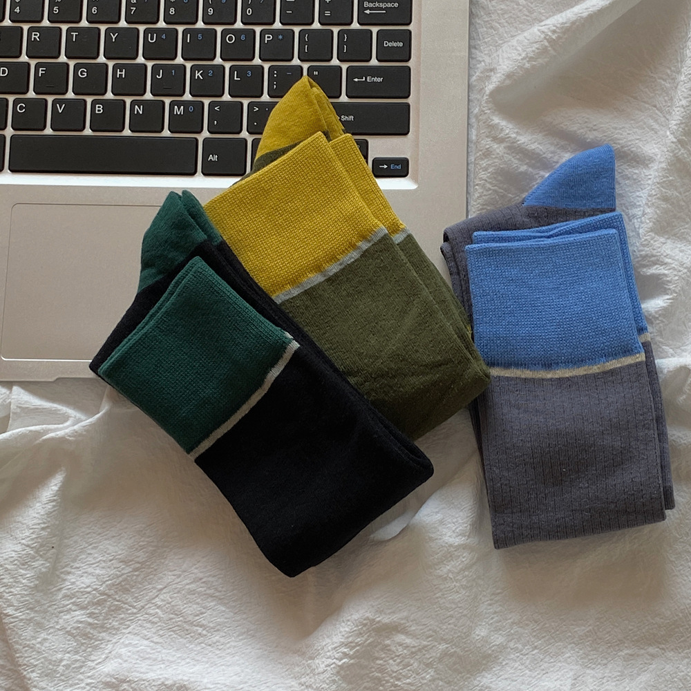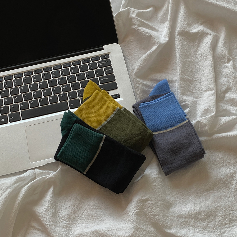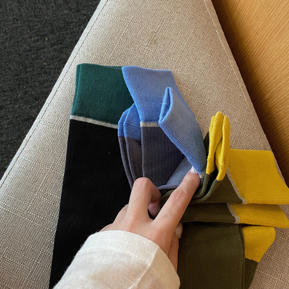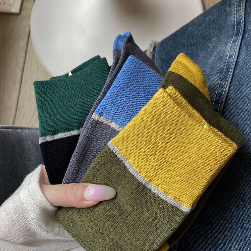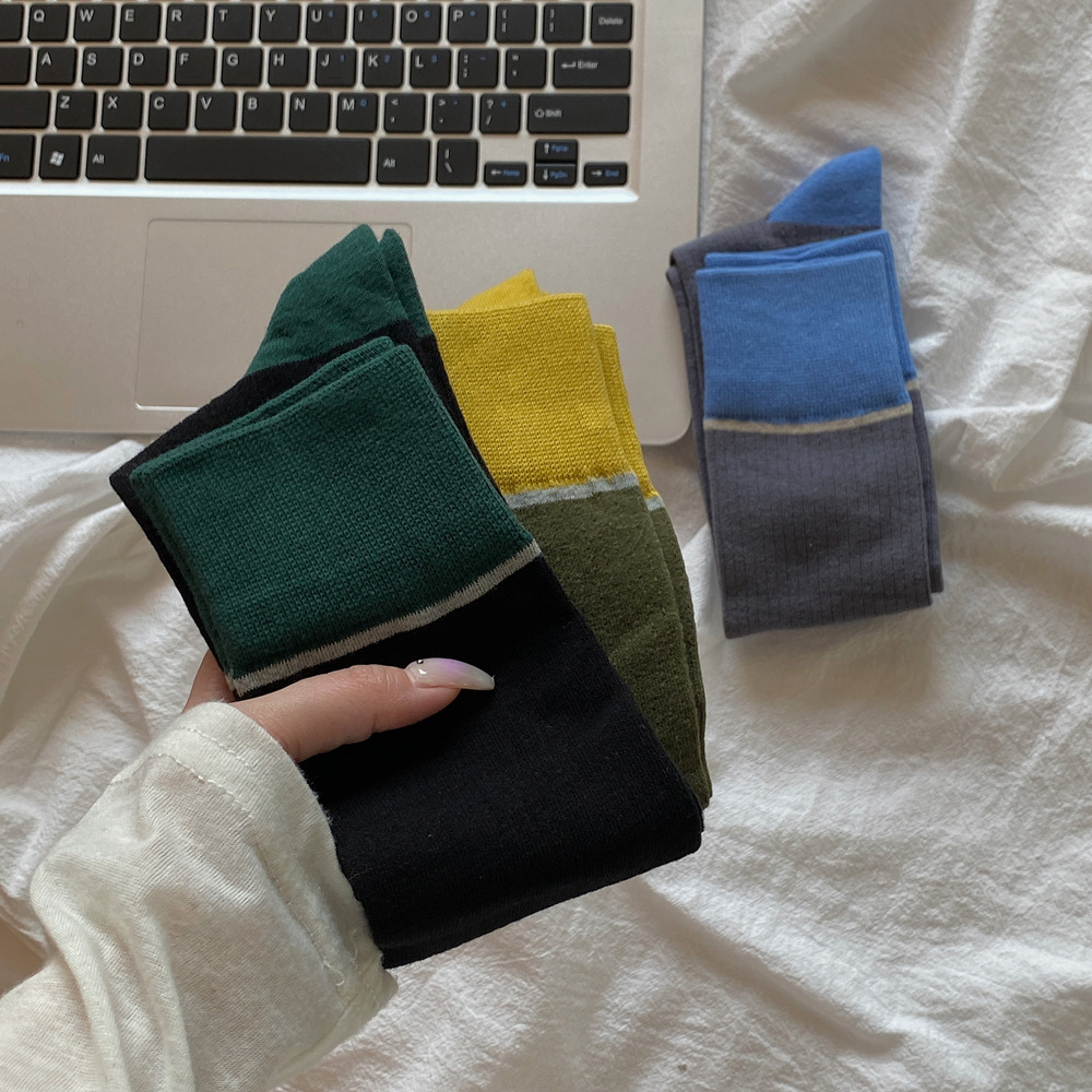 ins 한국 동대문 배색 배색 종아리 양말 그레이 니삭스 여성 양말 베이직 다용도 컬리지 스타일