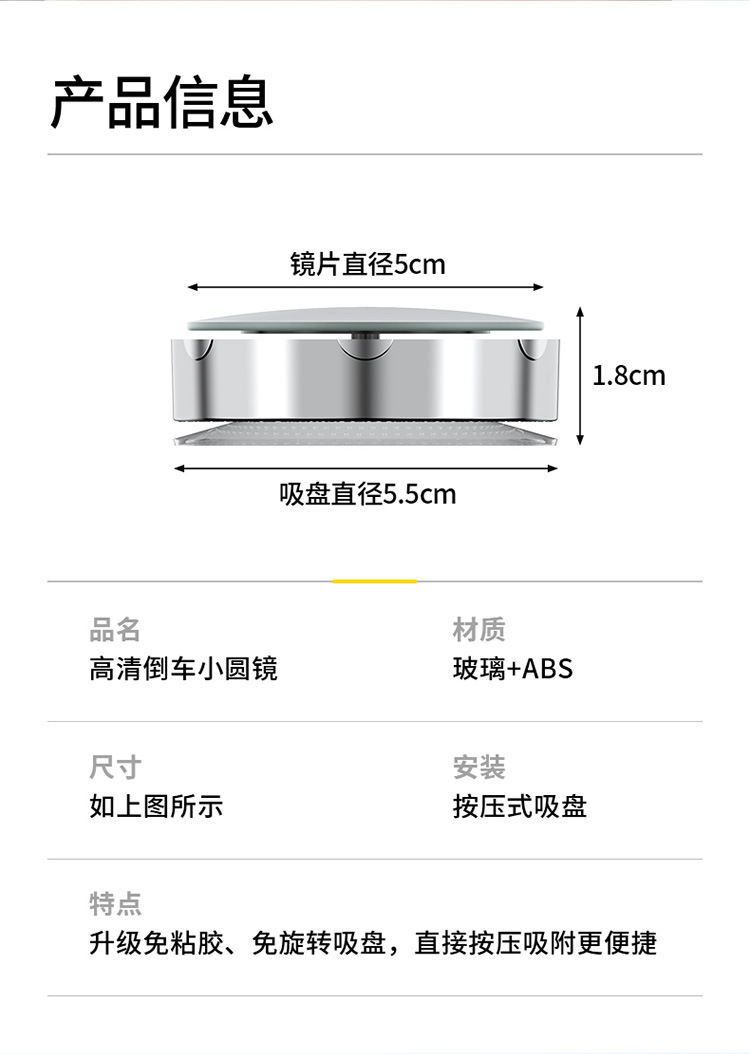 360 도 흡입 컵 360 도 사각 지대 거울 보편적 인 반전 작은 둥근 거울을 뒤집는 자동차