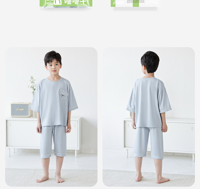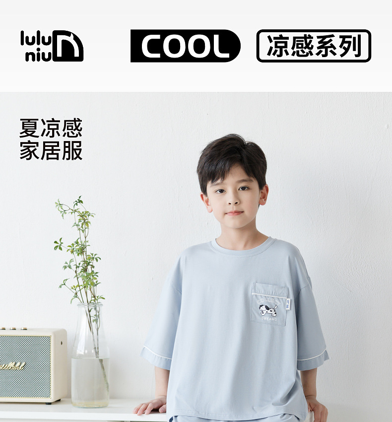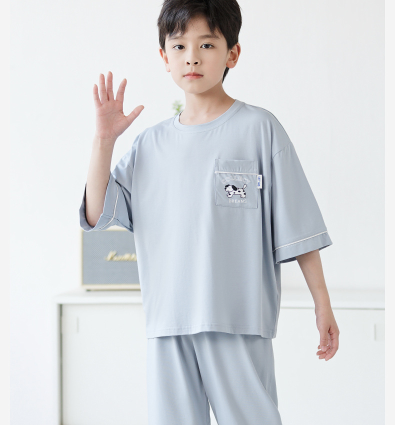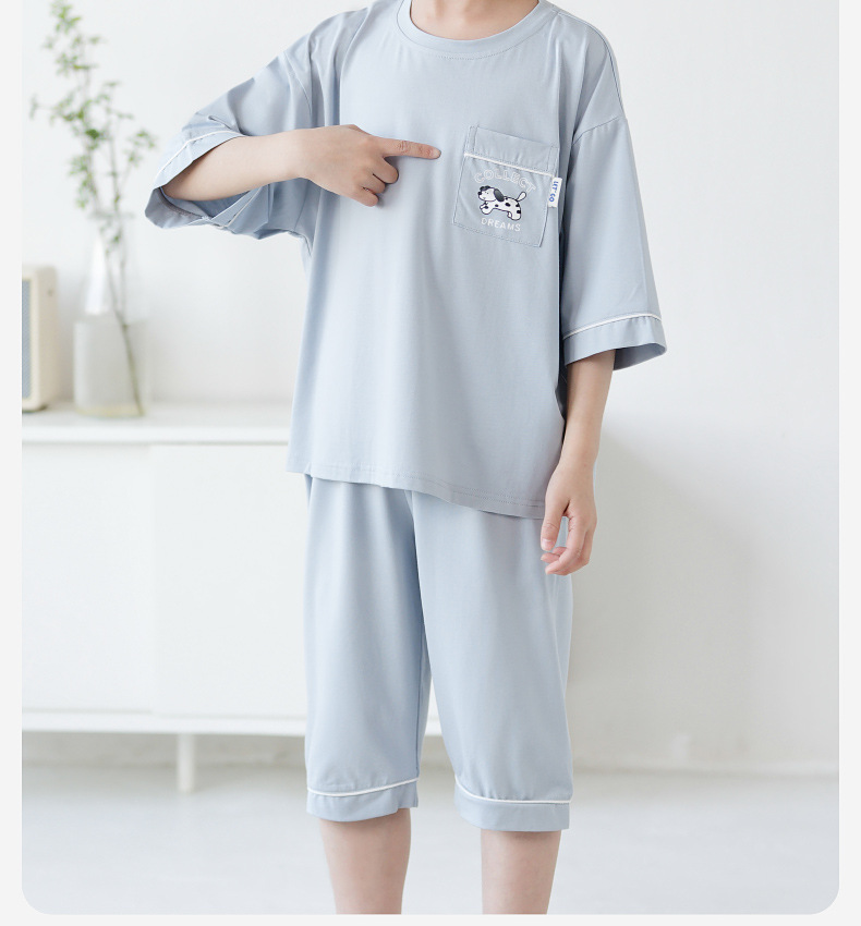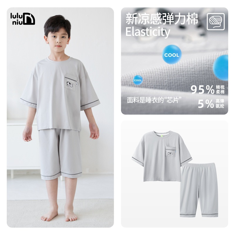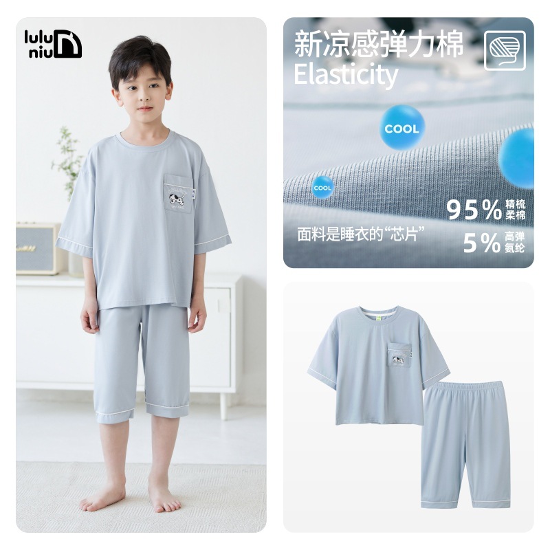 Luluniu 어린이 잠옷 소년 여름 순수 코튼 7부 소매 얇은 느슨한 중대형 어린이 소년 홈 의류 세트
