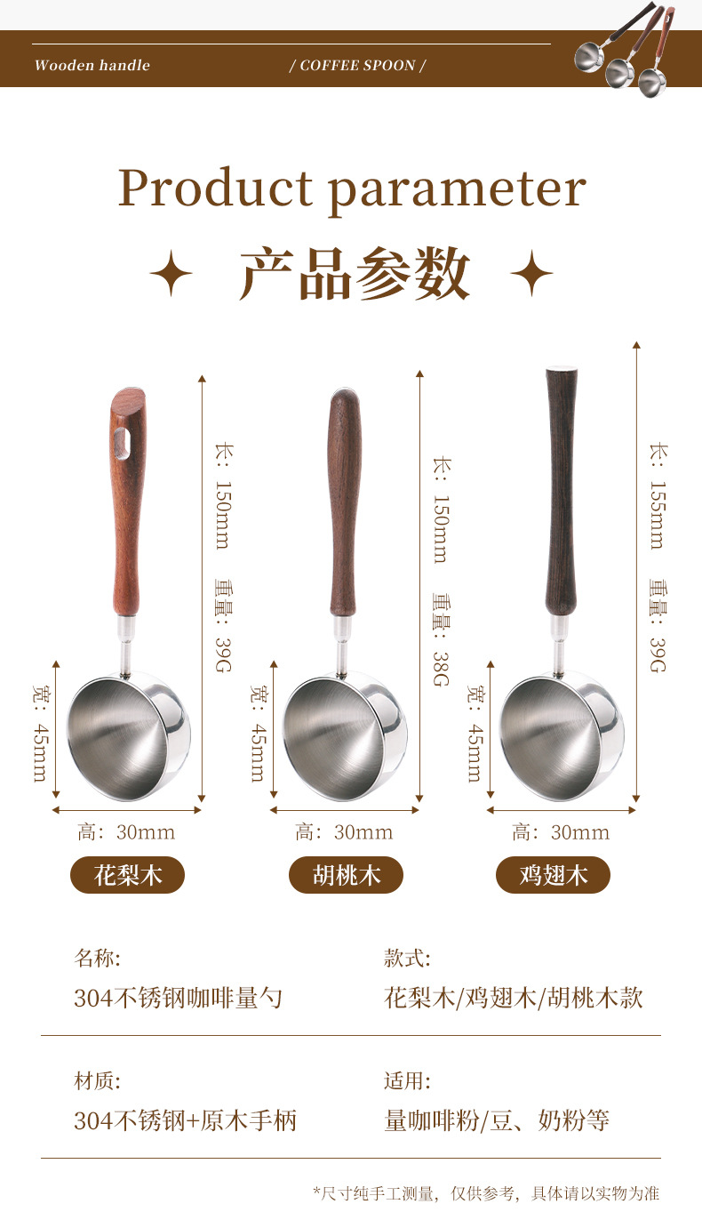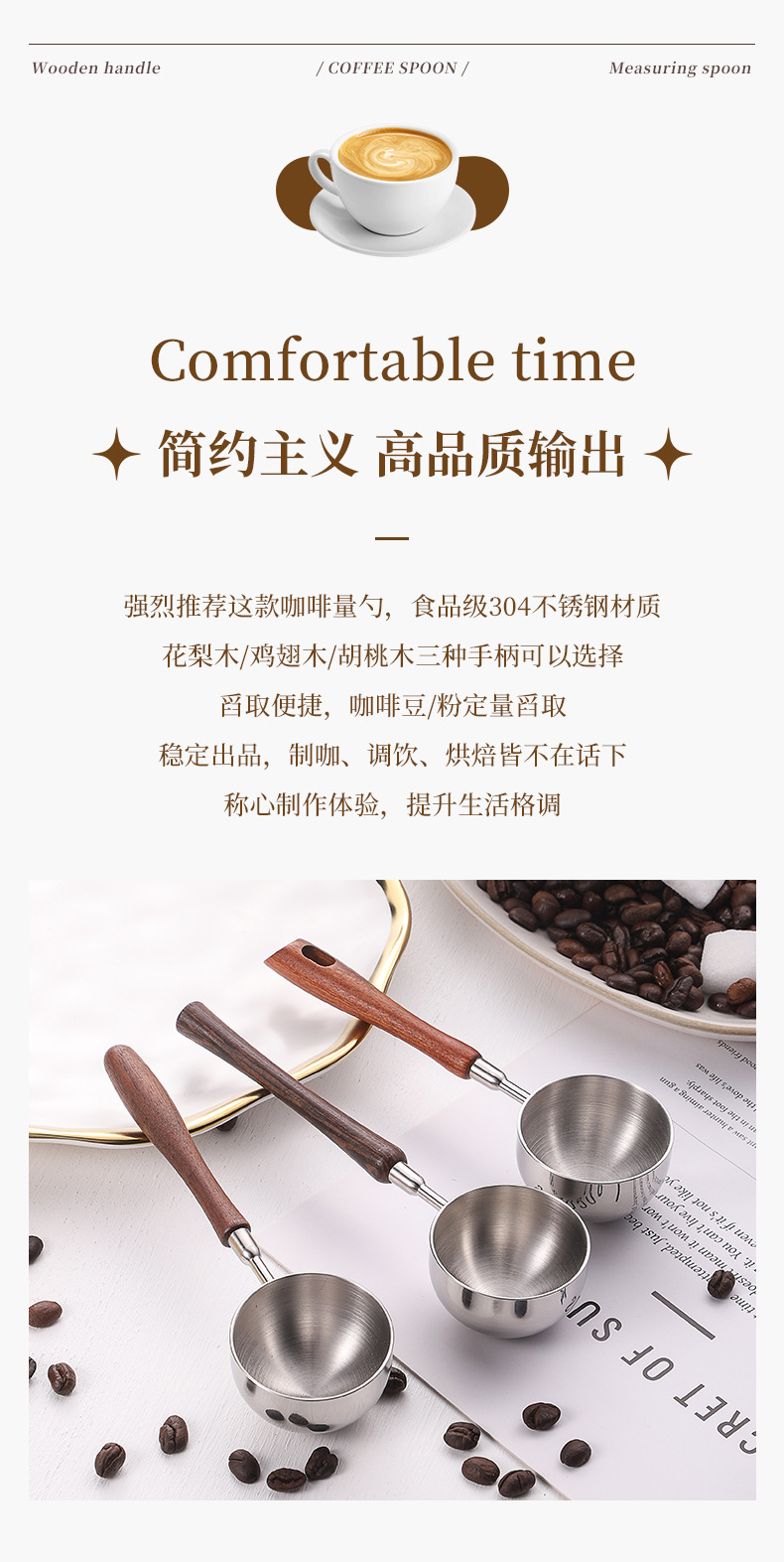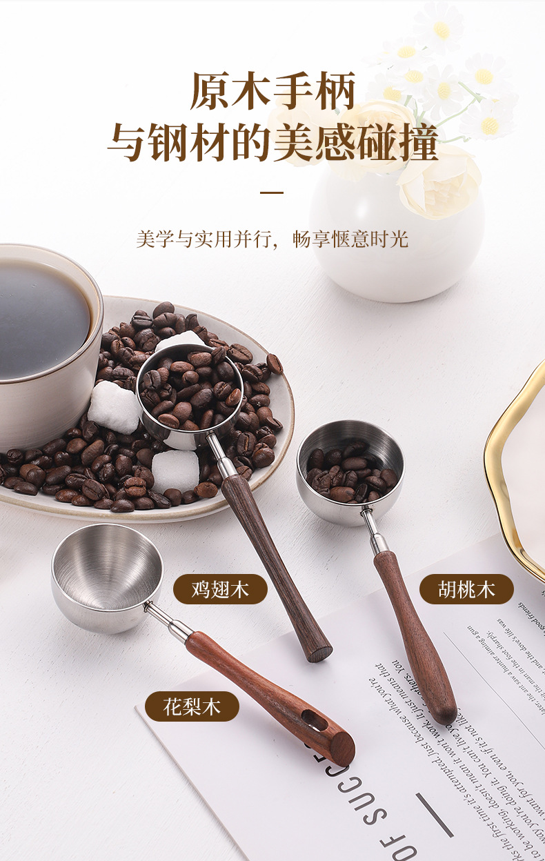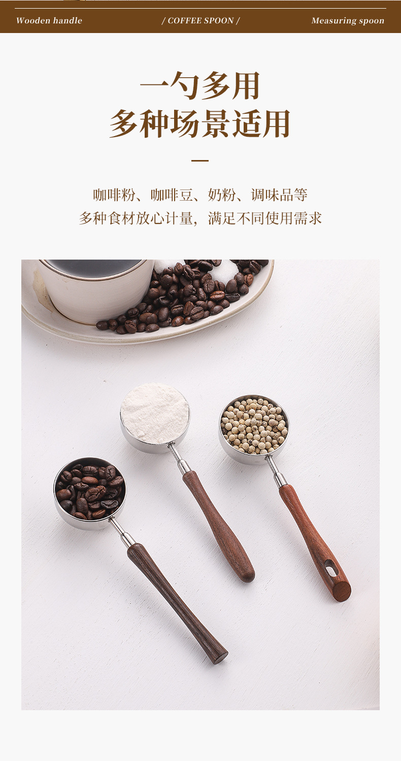 304 스테인레스 스틸 측정 숟가락 로즈우드 손잡이 베이킹 커피 콩 분유 분말 조미료 측정 숟가락 스케일 그램 무게 측정 숟가락스토어 가기