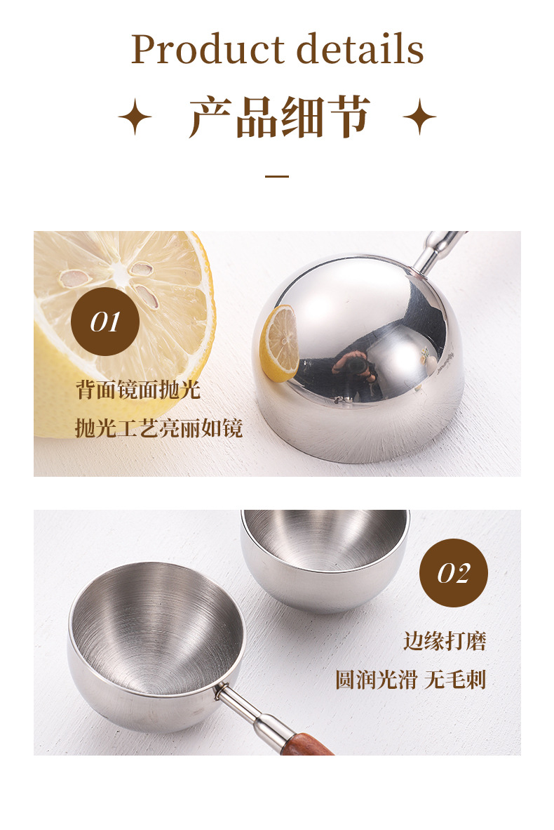 304 스테인레스 스틸 측정 숟가락 로즈우드 손잡이 베이킹 커피 콩 분유 분말 조미료 측정 숟가락 스케일 그램 무게 측정 숟가락