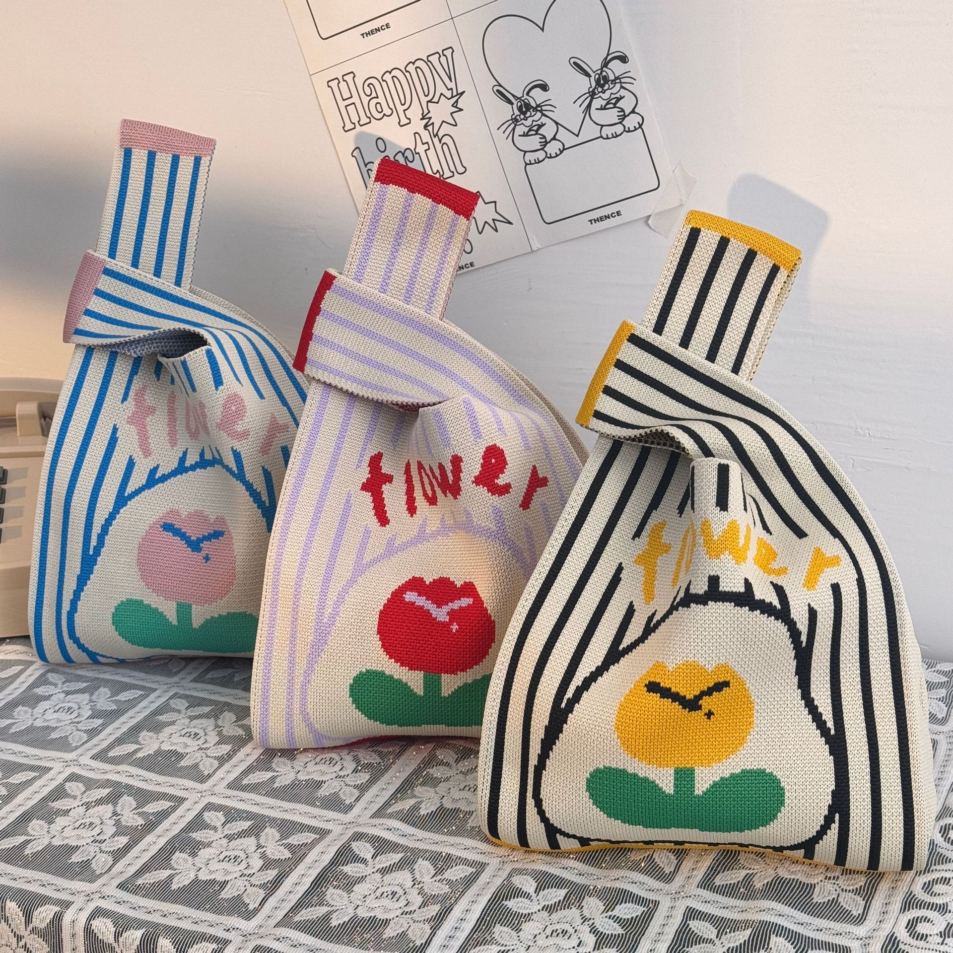 꽃 선물 가방 손 가방 여신 축제 휴대용 니트 가방 손목 가방 짠 가방 여성의 날 선물 가방
