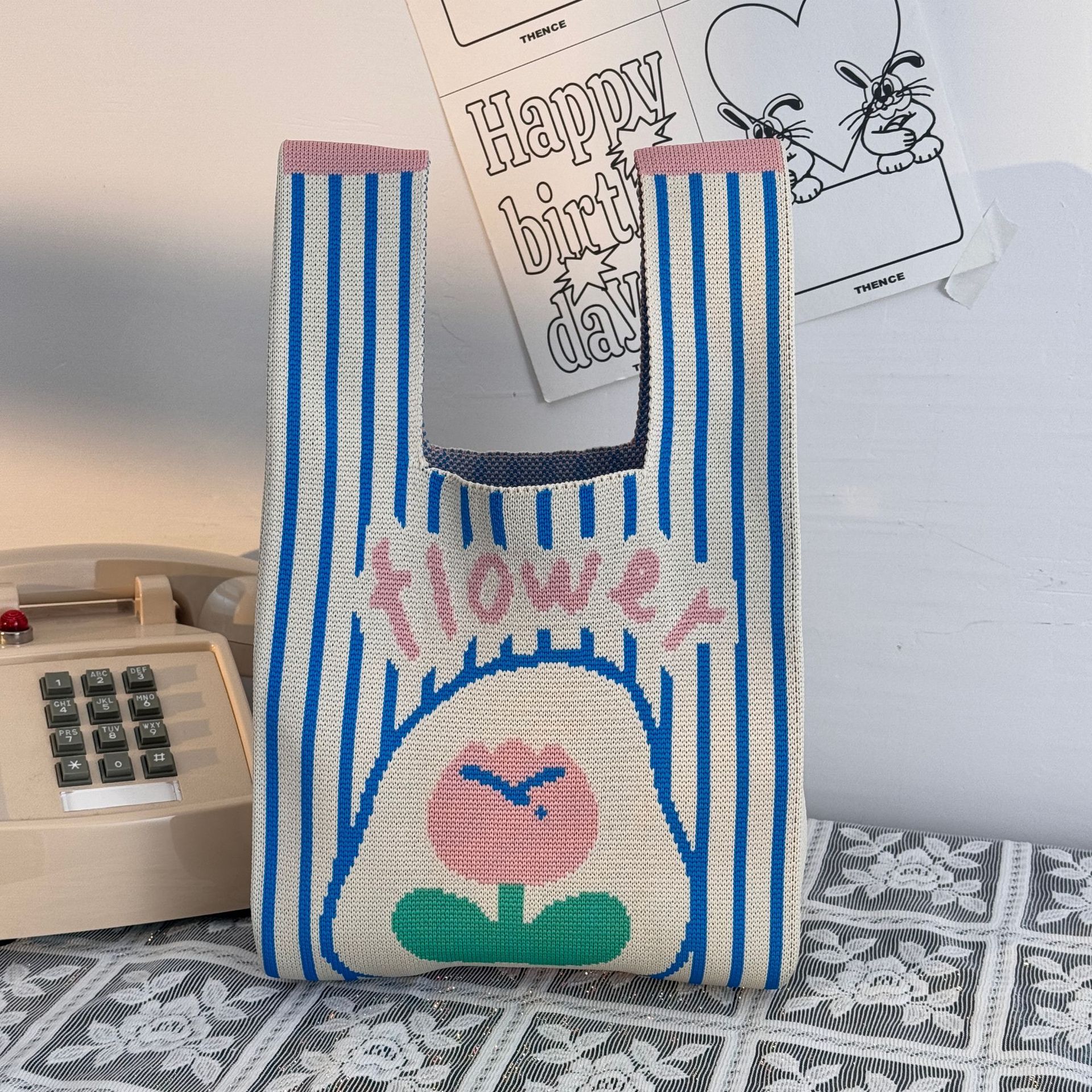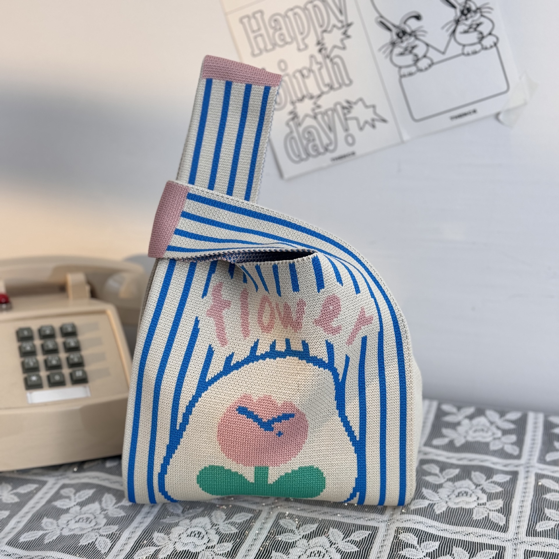 꽃 선물 가방 손 가방 여신 축제 휴대용 니트 가방 손목 가방 짠 가방 여성의 날 선물 가방스토어 가기