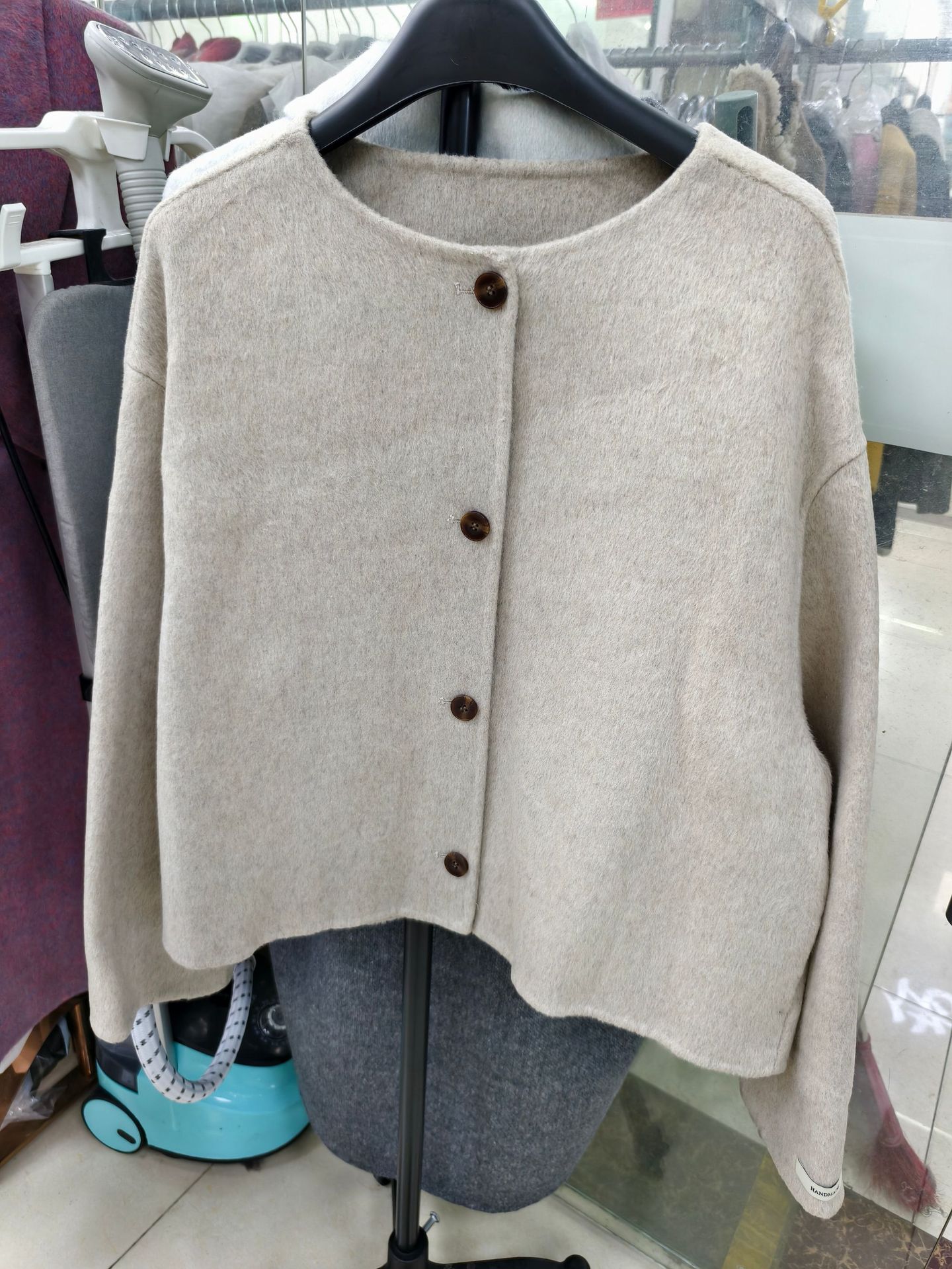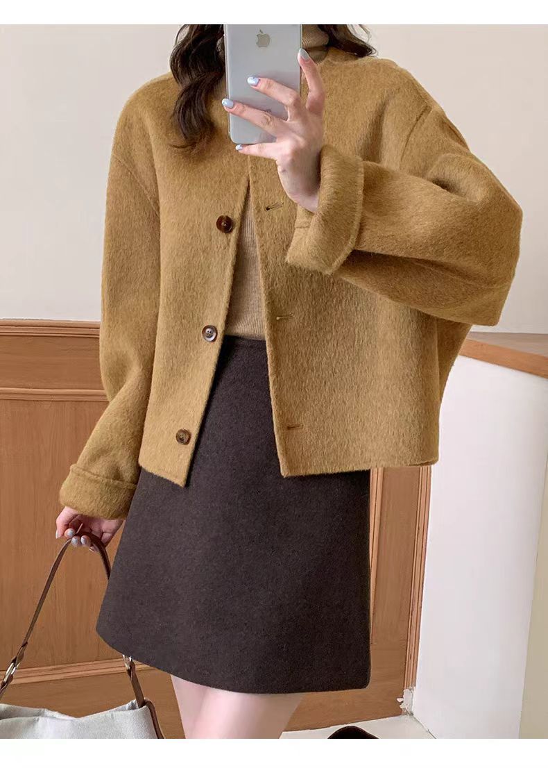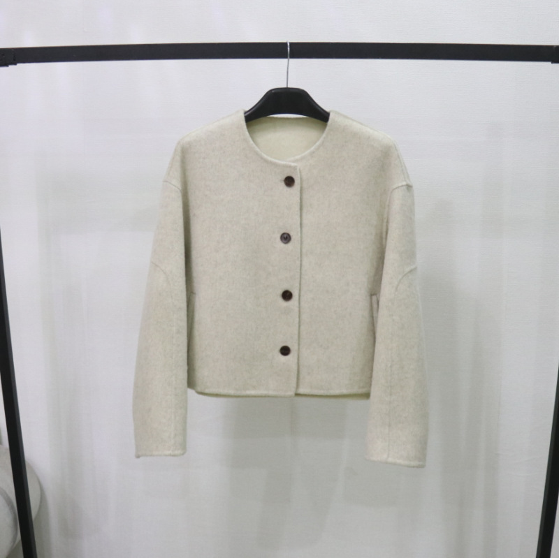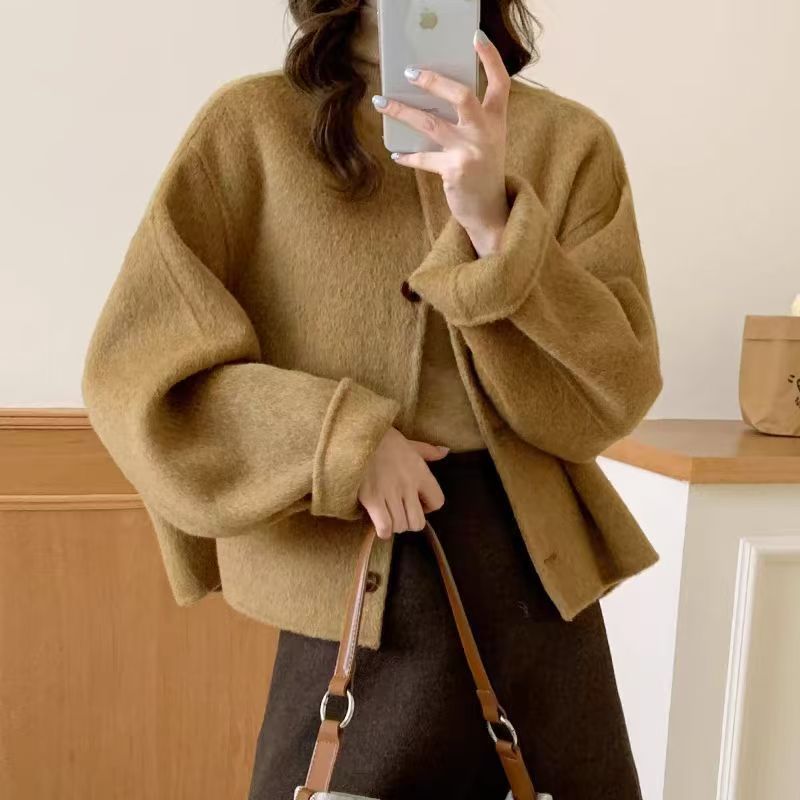 2025 가을 겨울 신상 한국 스타일 루즈핏 우아한 샤넬풍 모직 코트 고급 라운드넥 숏 더블페이스 모직 코트스토어 가기