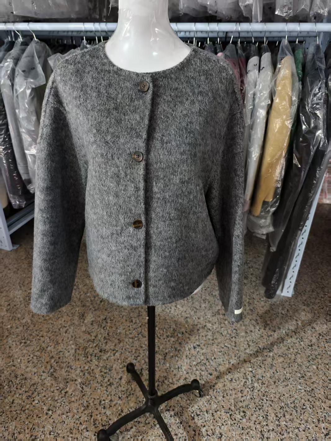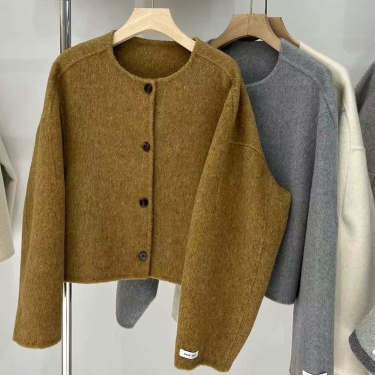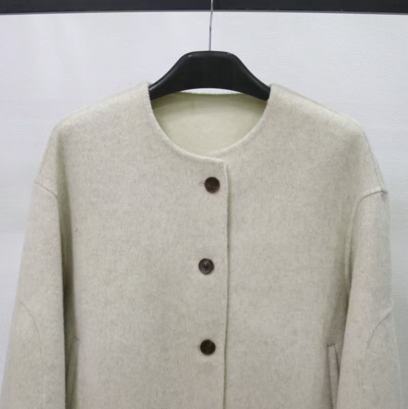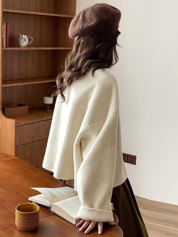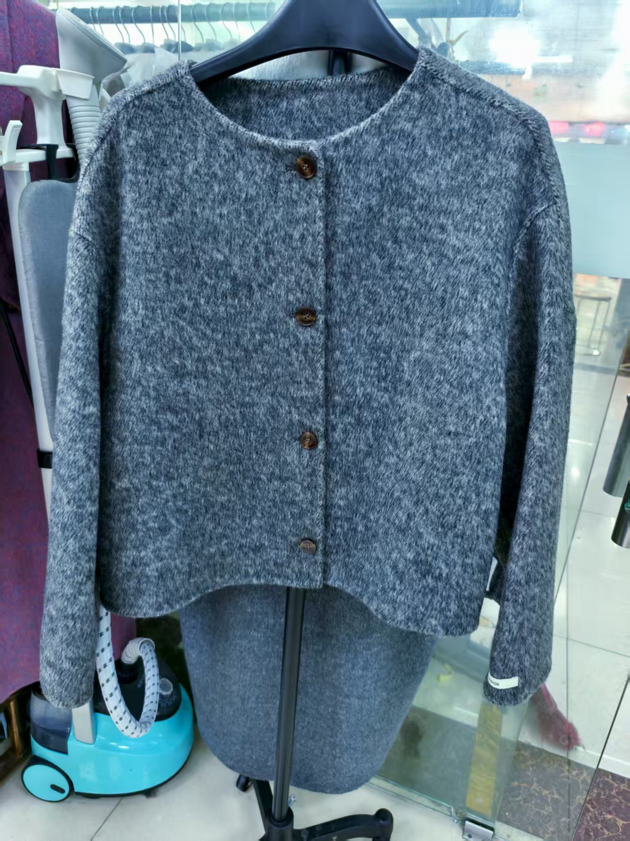 2025 가을 겨울 신상 한국 스타일 루즈핏 우아한 샤넬풍 모직 코트 고급 라운드넥 숏 더블페이스 모직 코트스토어 가기