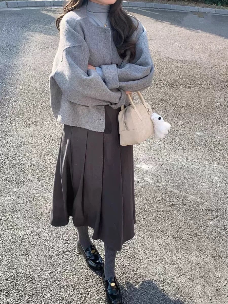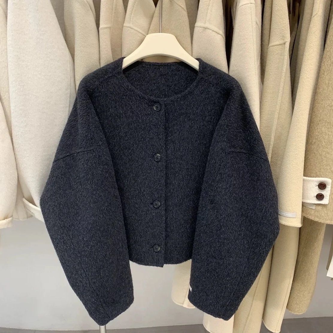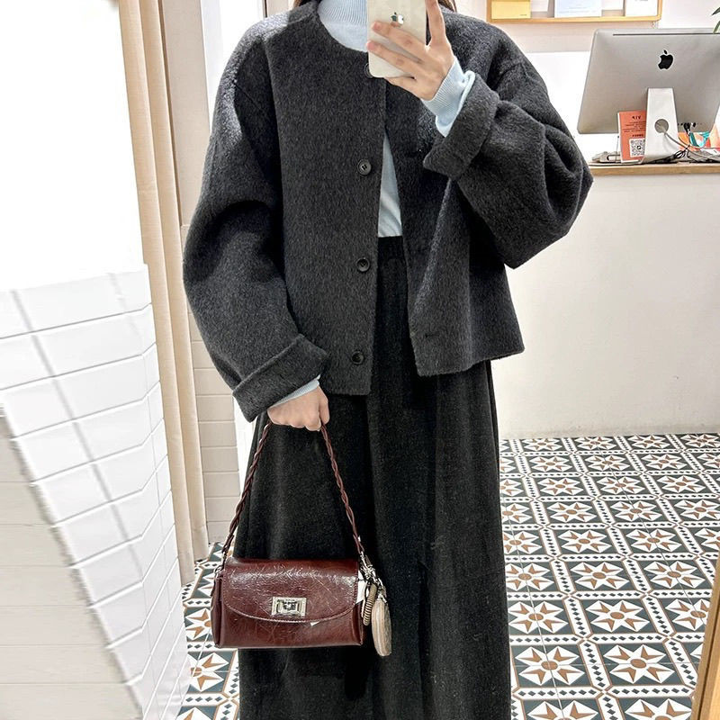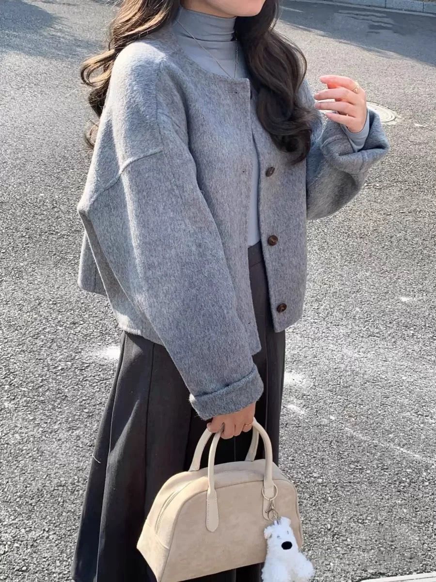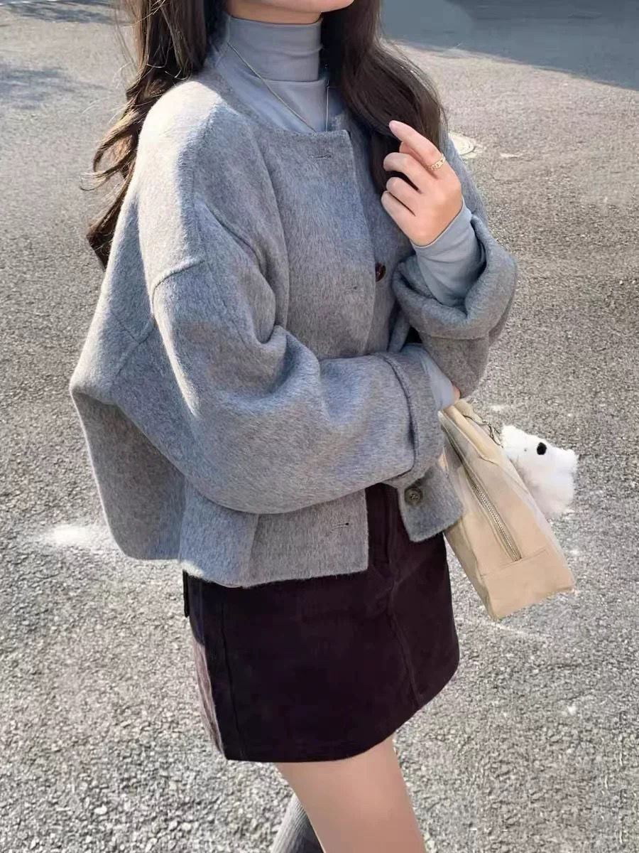 2025 가을 겨울 신상 한국 스타일 루즈핏 우아한 샤넬풍 모직 코트 고급 라운드넥 숏 더블페이스 모직 코트