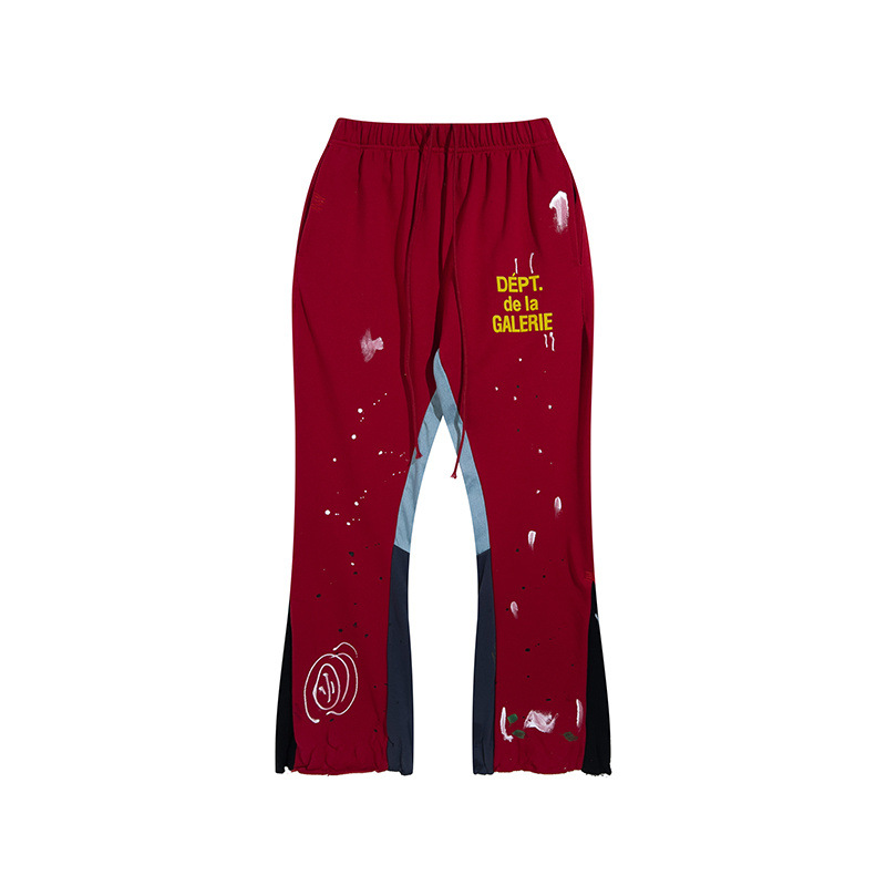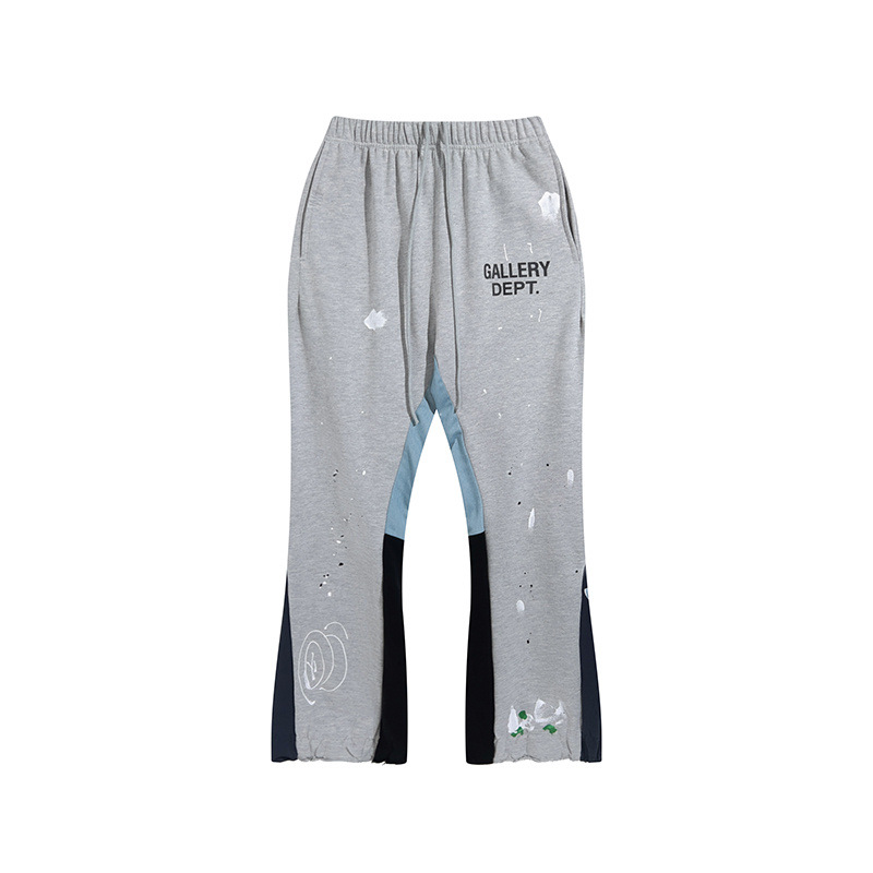 국경 간 대외 무역 트렌디 브랜드 갤러리 손으로 그린 스플래시 잉크 스플라이싱 대비 색상 스포츠 바지 남성용 루즈 플레어 캐주얼 바지
