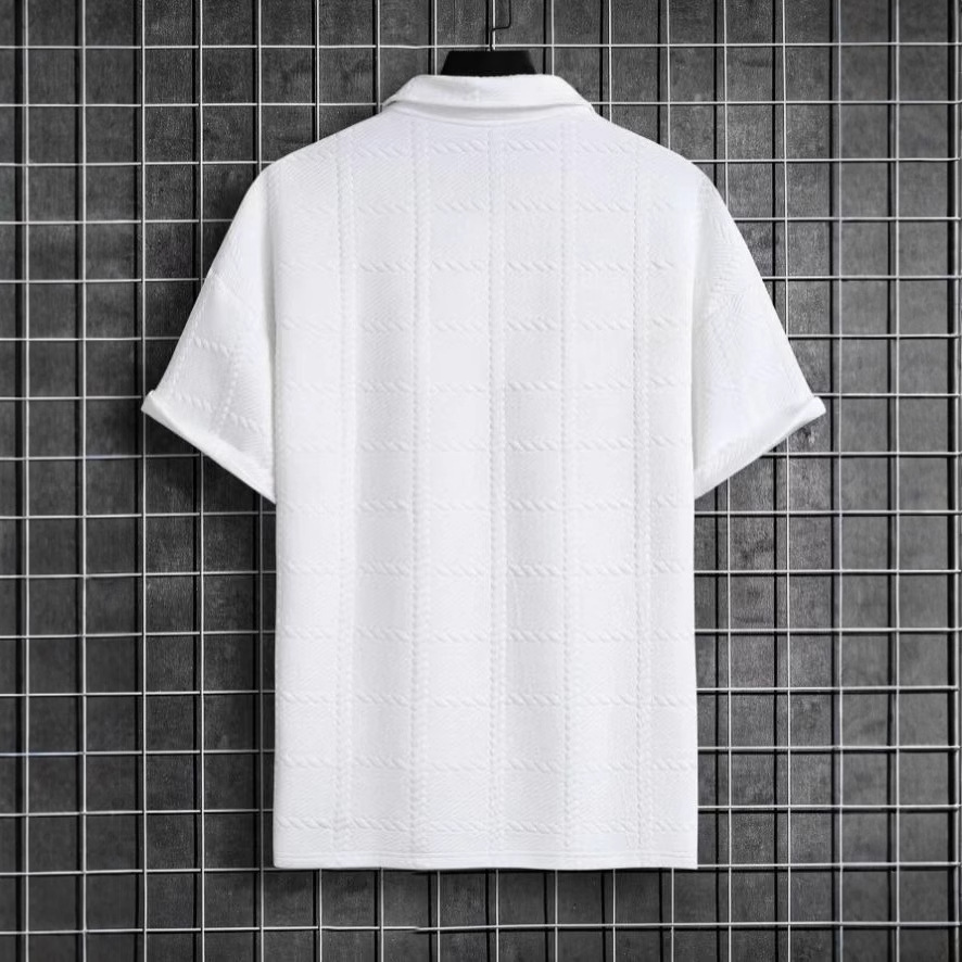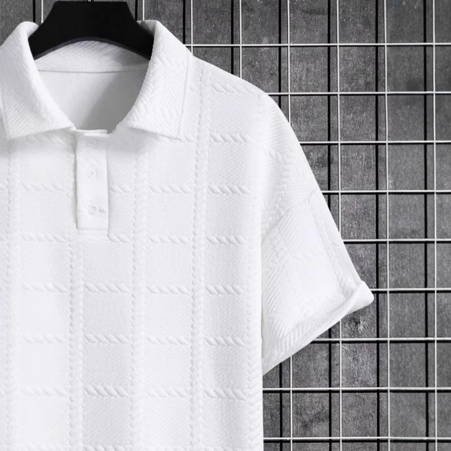 2025 여름 국경 유럽과 미국 남성 자카드 질감 반팔 옷깃 폴로 셔츠 탑 남성 아마존 테무스토어 가기