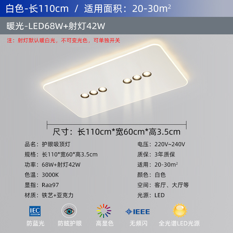 • 흰색 직사각형 110CM 전체 스펙트럼 3색 디밍