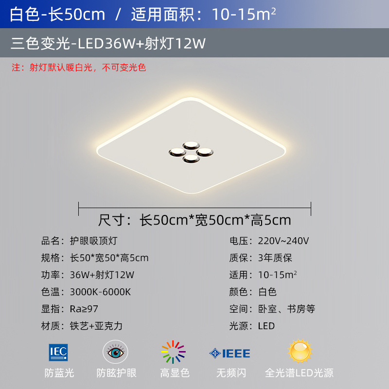 • 흰색 사각형 50CM 전체 스펙트럼 3색 디밍