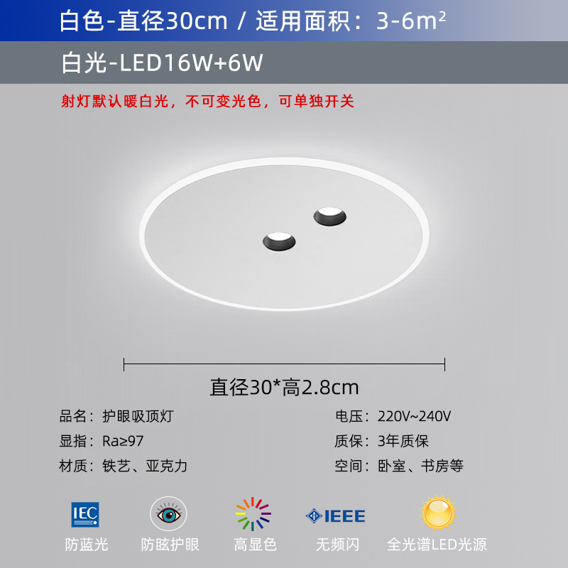 • 흰색 30CM 전체 스펙트럼 3색 디밍