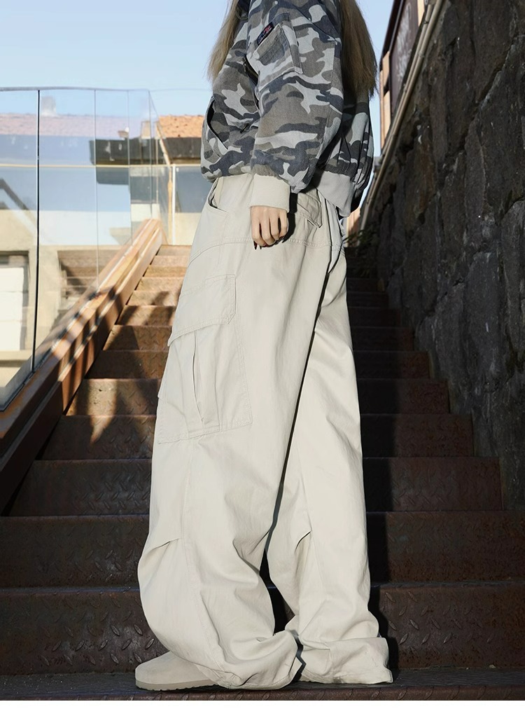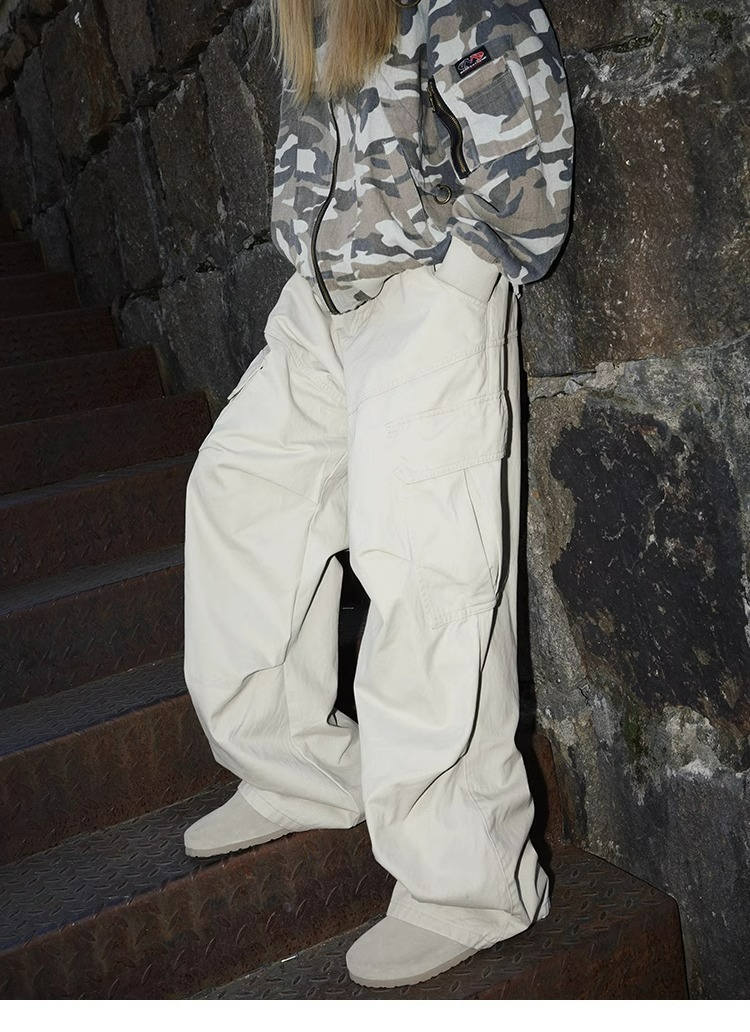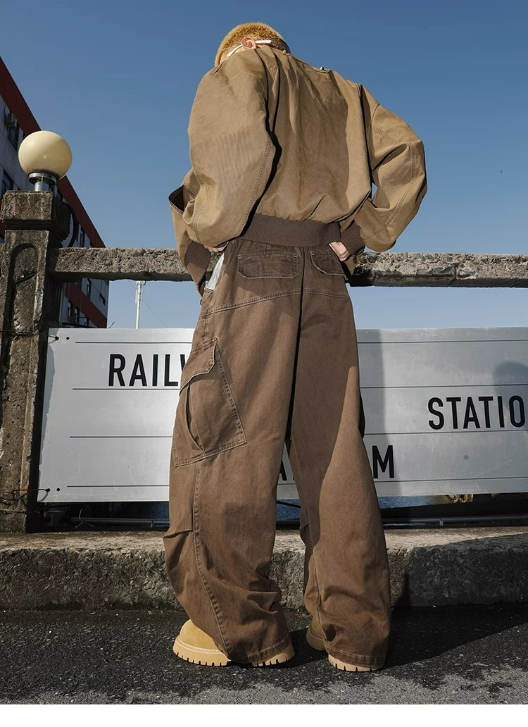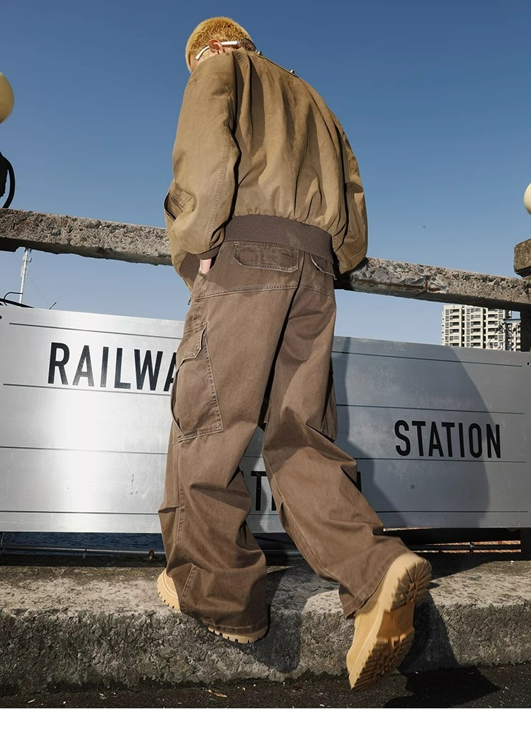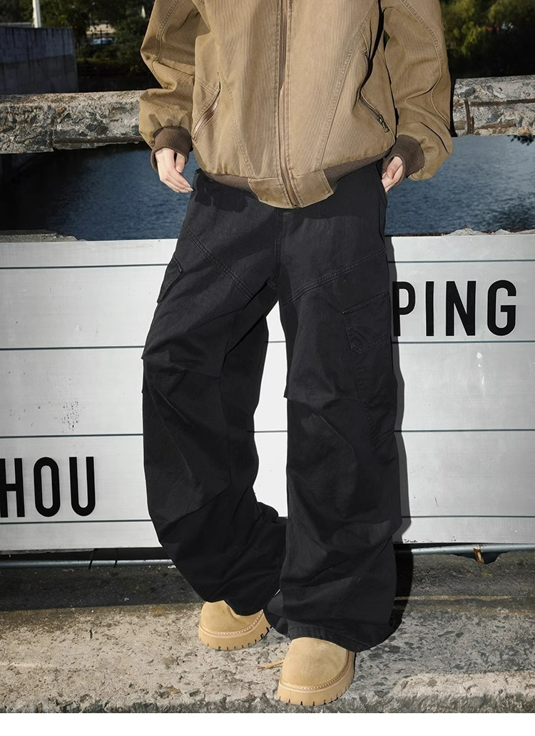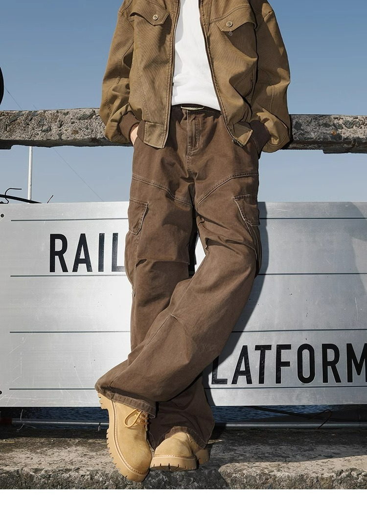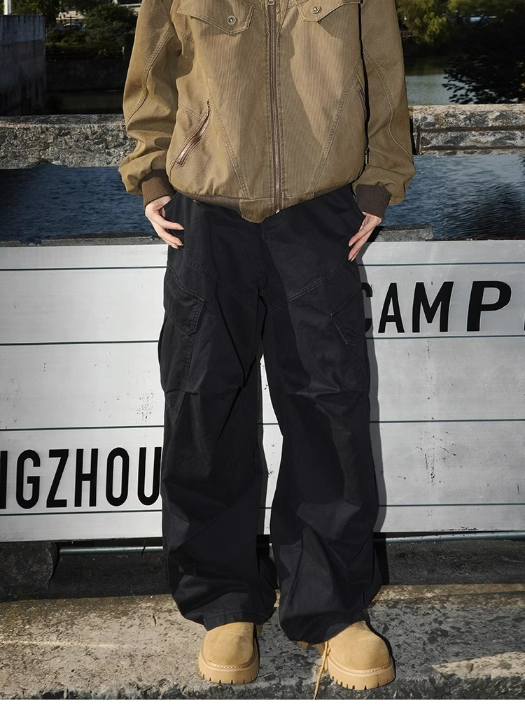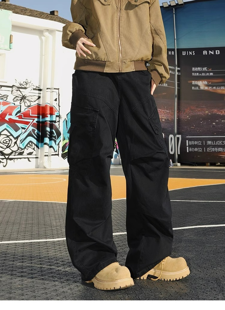 일본 스타일 주름 낙하산 귀여운 바지 남자 봄 새로운 큰 포켓 유행 브랜드 레트로 하이 스트리트 느슨한 캐주얼 바지스토어 가기