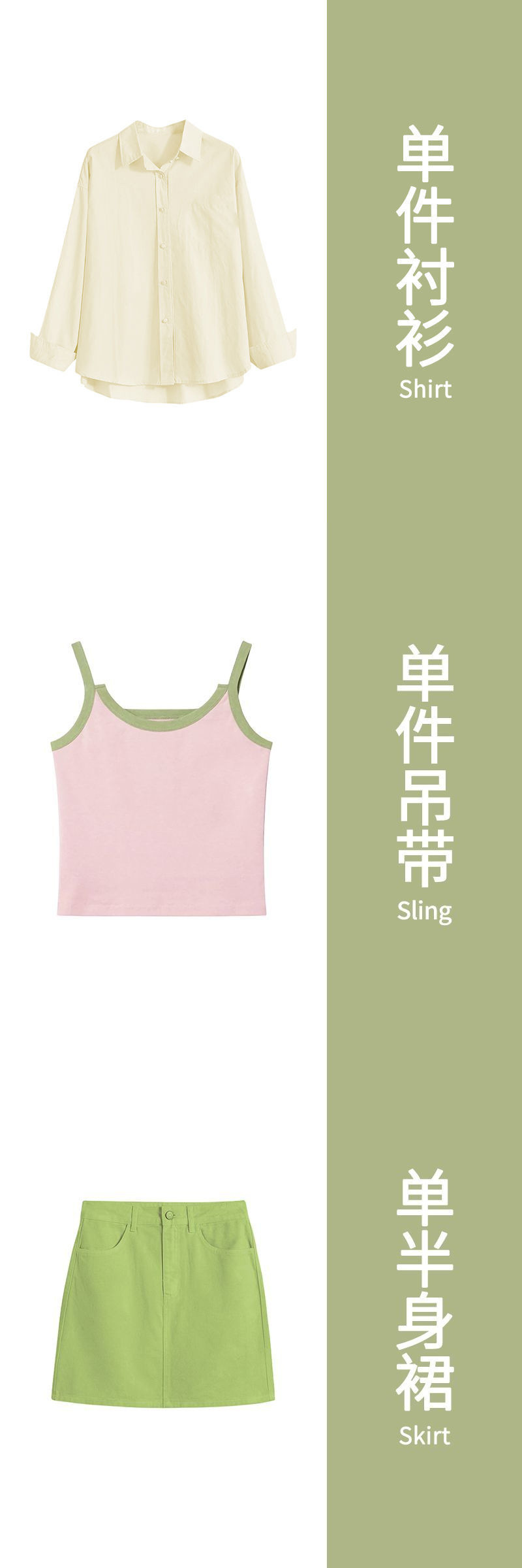 • 살구 셔츠 + 핑크 멜빵 + 그린 스커트 [3종세트]