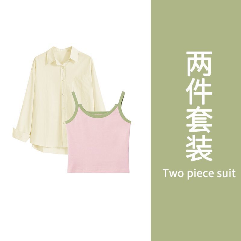 • 살구 셔츠 + 핑크 멜빵 [투피스 세트]