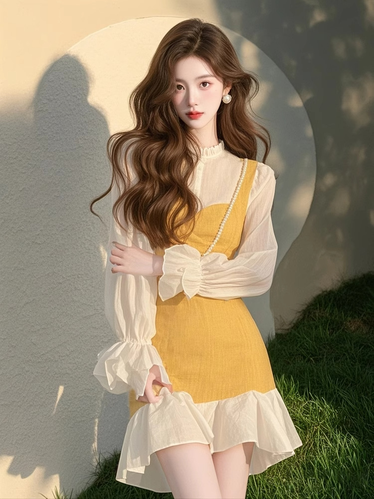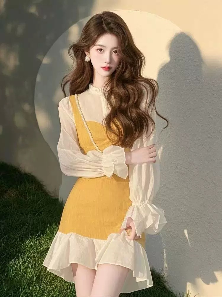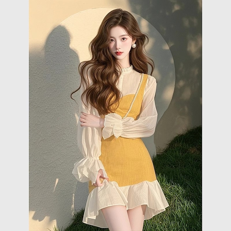 노란색 원피스 2025 새로운 Miu Miu 스타일 향기로운 스타일 프랑스 리치 더러운 하이 엔드 원피스스토어 가기