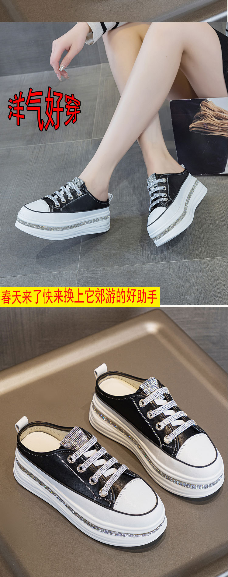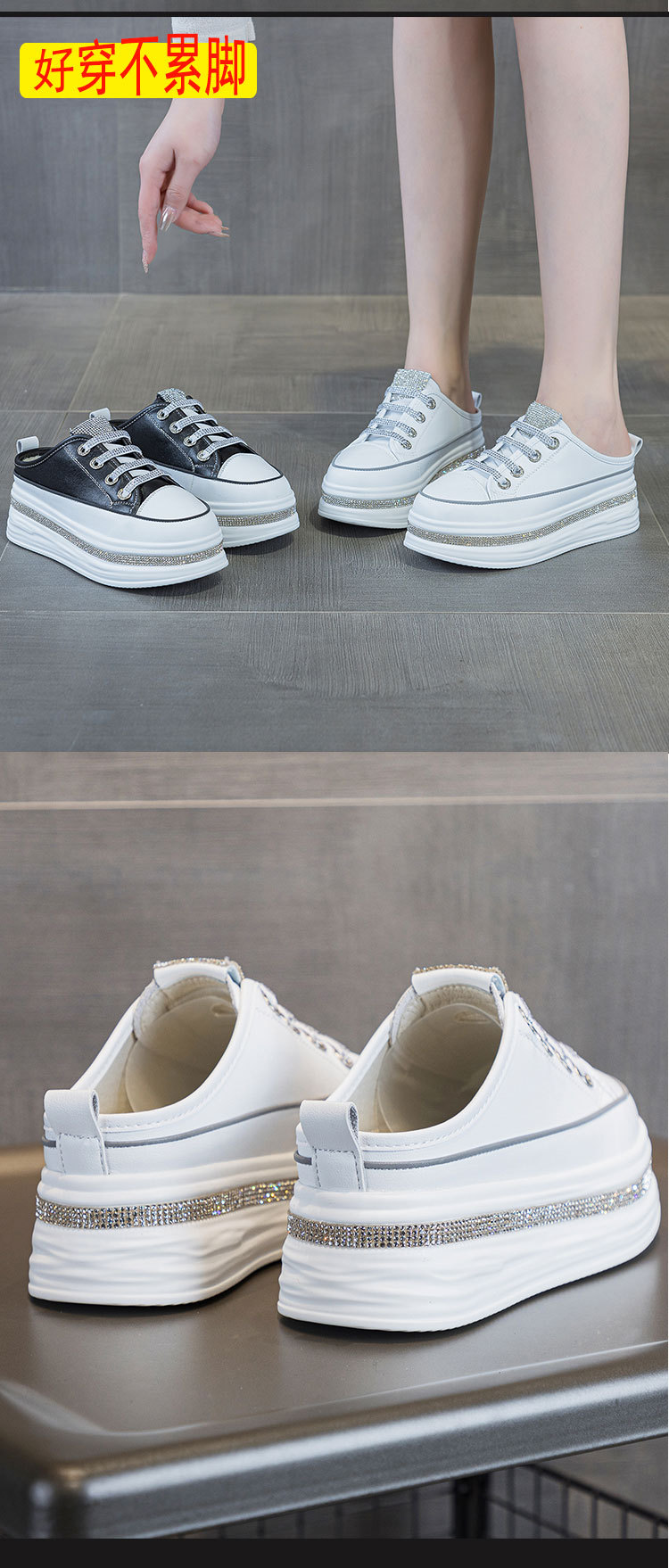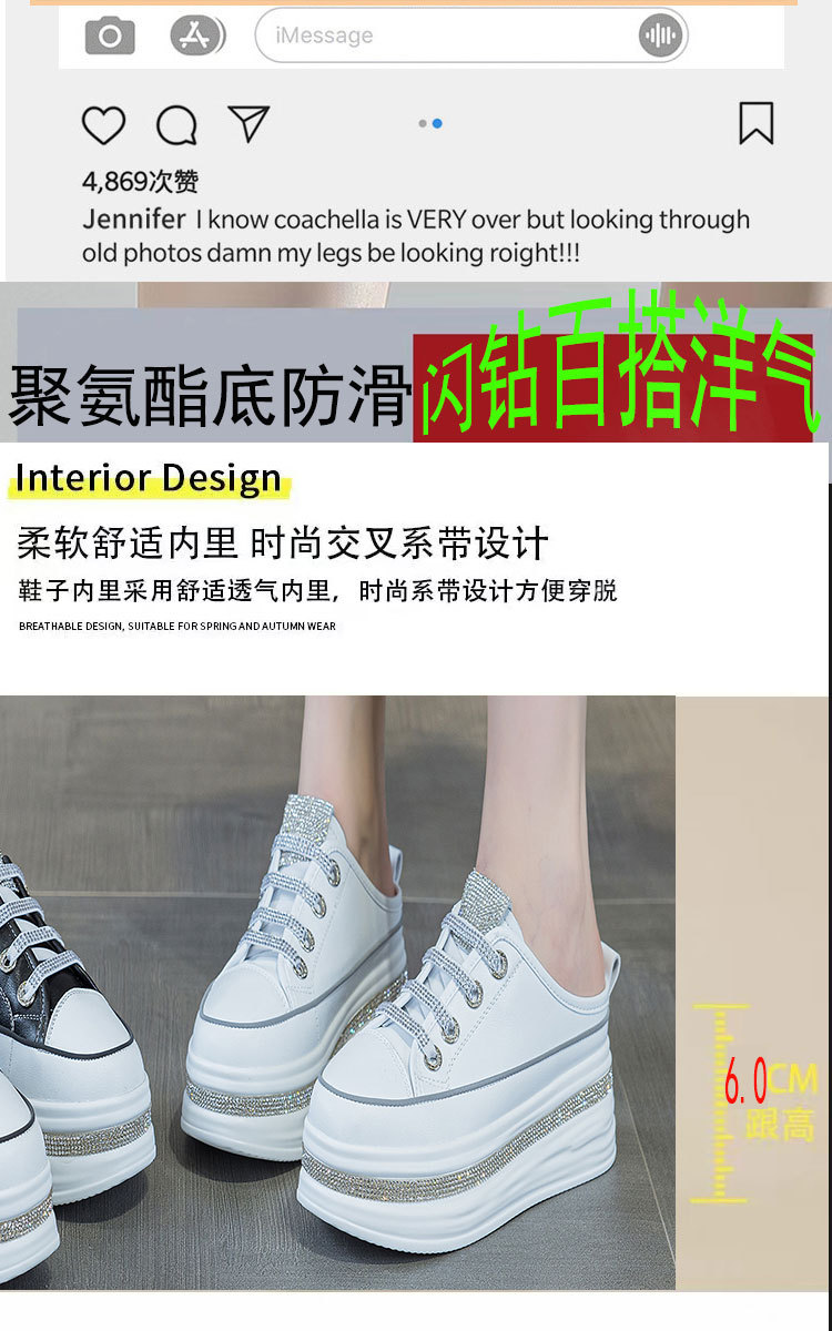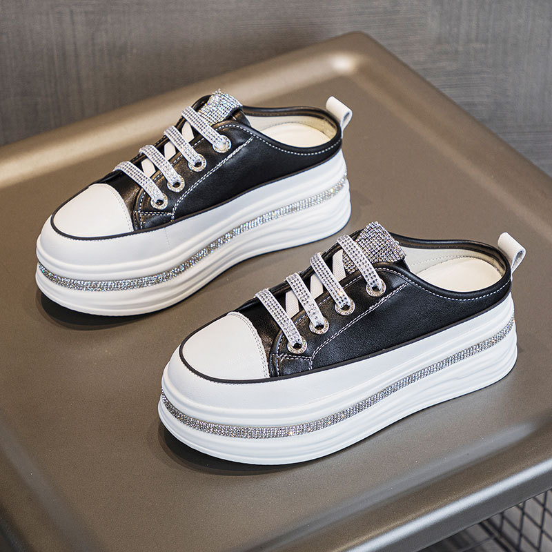 야외 착용을위한 두꺼운 밑창 플랫폼 라인스톤 슬리퍼 게으른 발가락 슬리퍼 2025 봄 여름 새로운 스타일 흰색 신발 여성용 캐주얼 슬리퍼