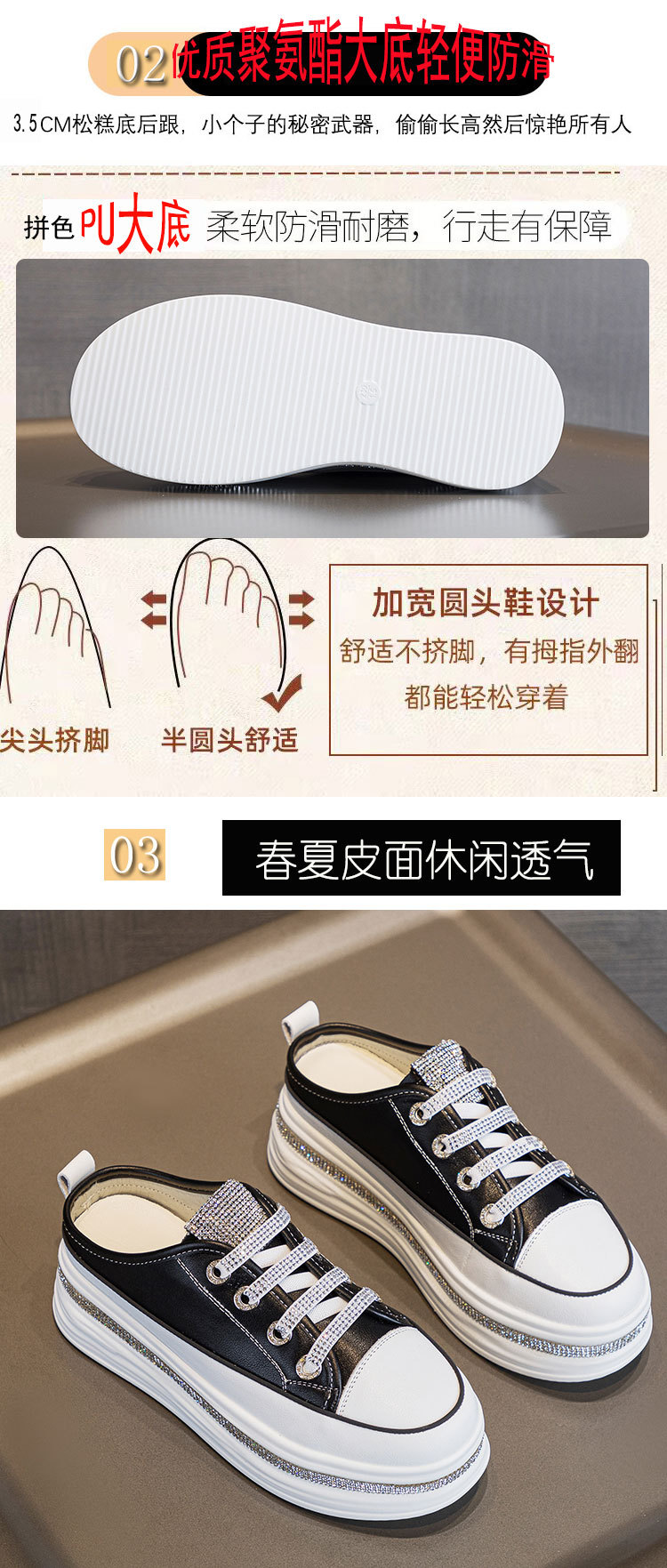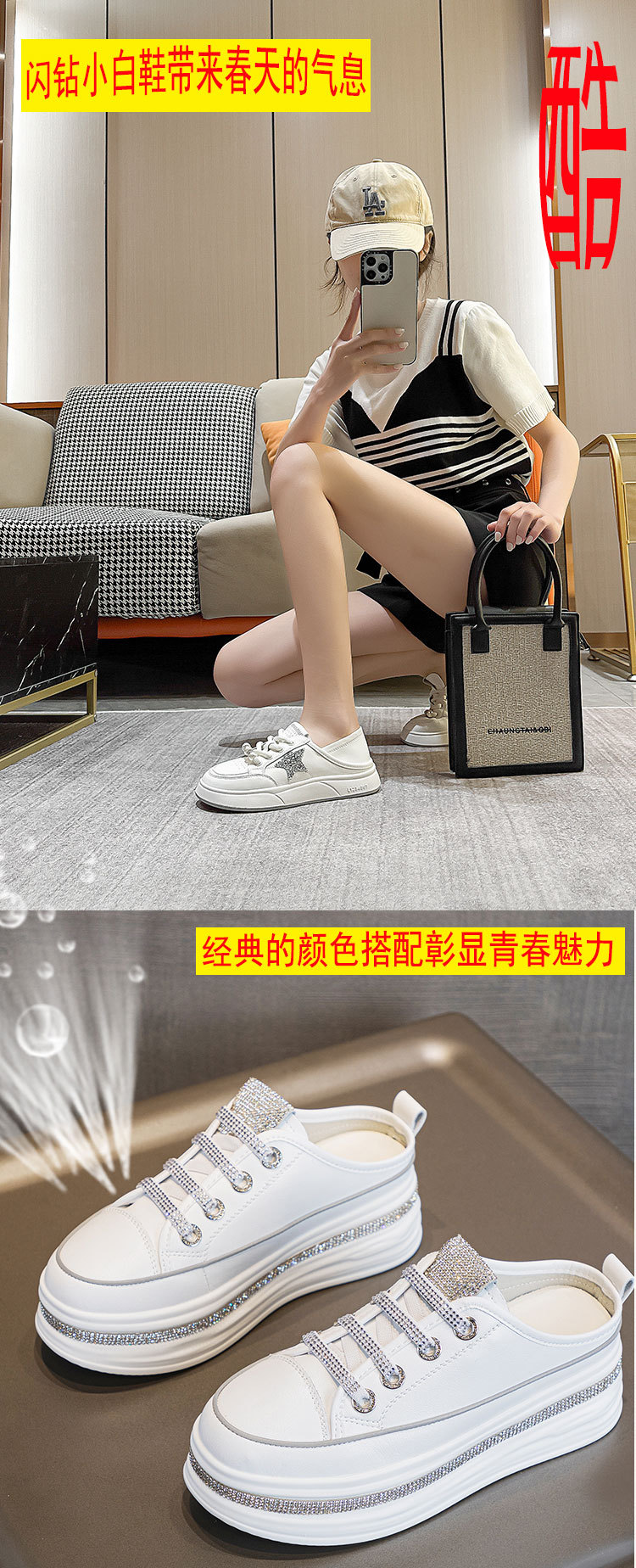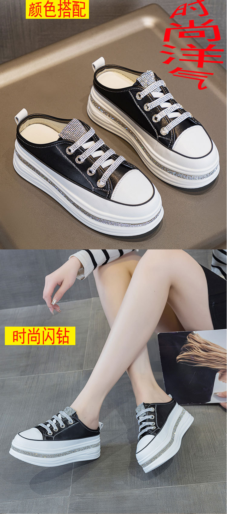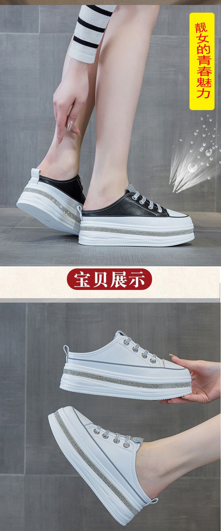 야외 착용을위한 두꺼운 밑창 플랫폼 라인스톤 슬리퍼 게으른 발가락 슬리퍼 2025 봄 여름 새로운 스타일 흰색 신발 여성용 캐주얼 슬리퍼