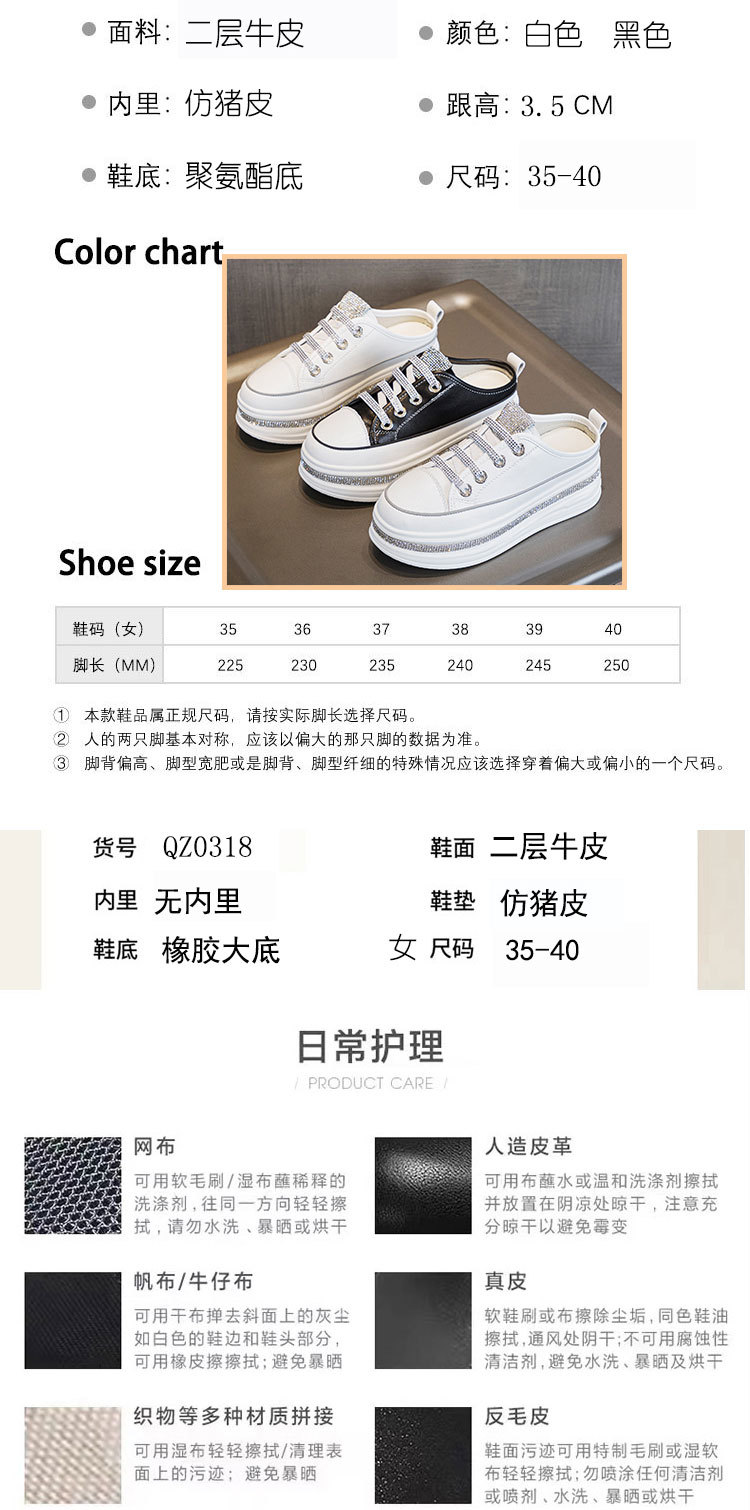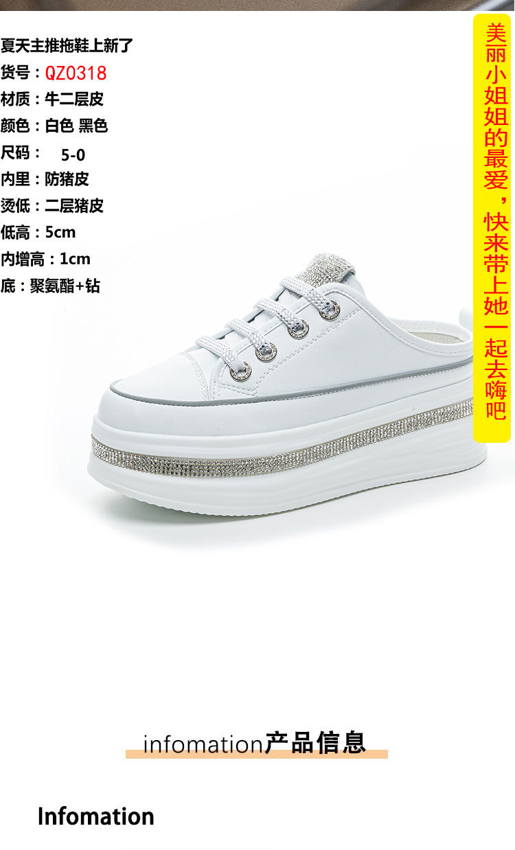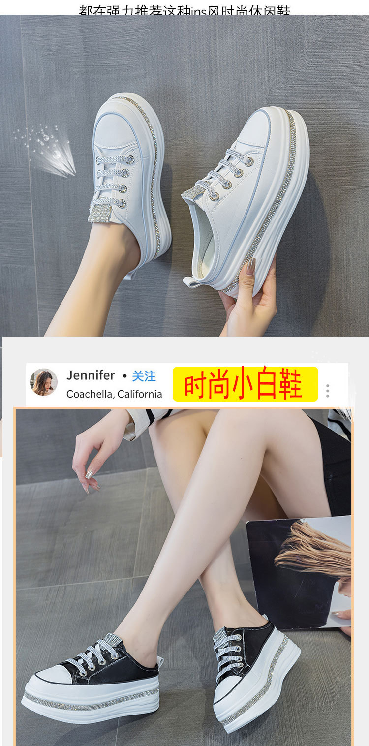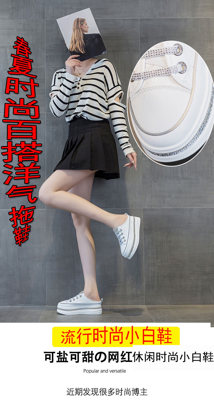 야외 착용을위한 두꺼운 밑창 플랫폼 라인스톤 슬리퍼 게으른 발가락 슬리퍼 2025 봄 여름 새로운 스타일 흰색 신발 여성용 캐주얼 슬리퍼스토어 가기