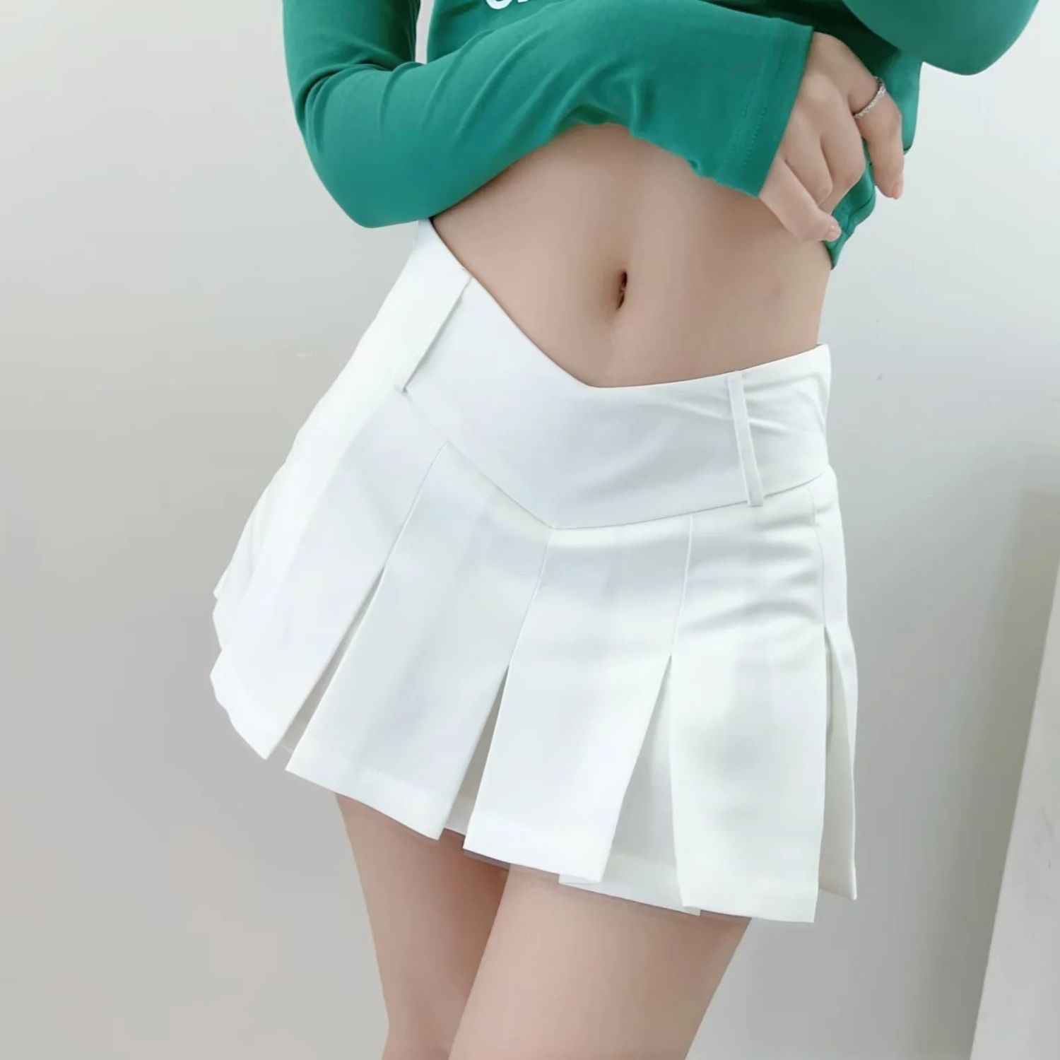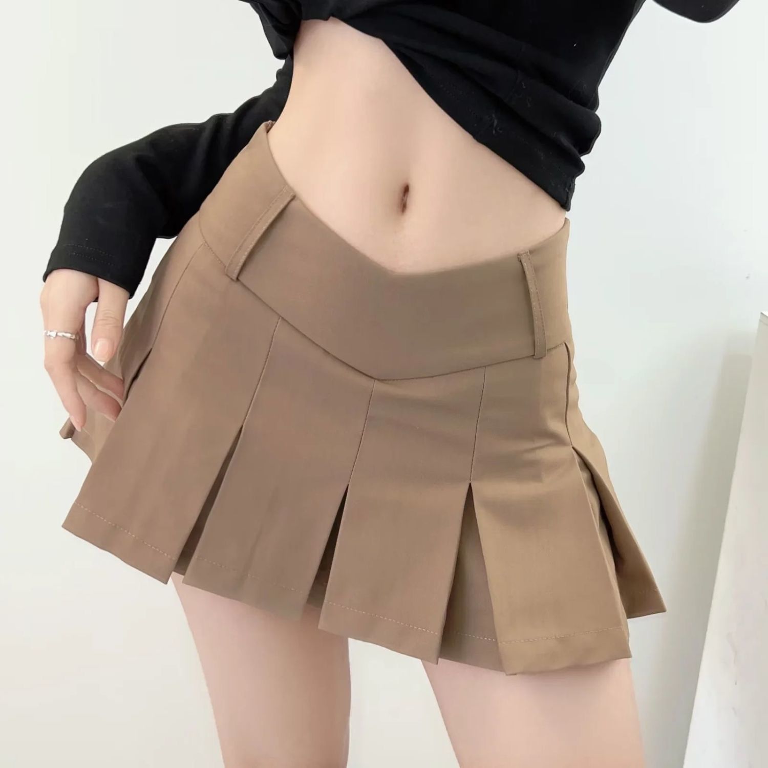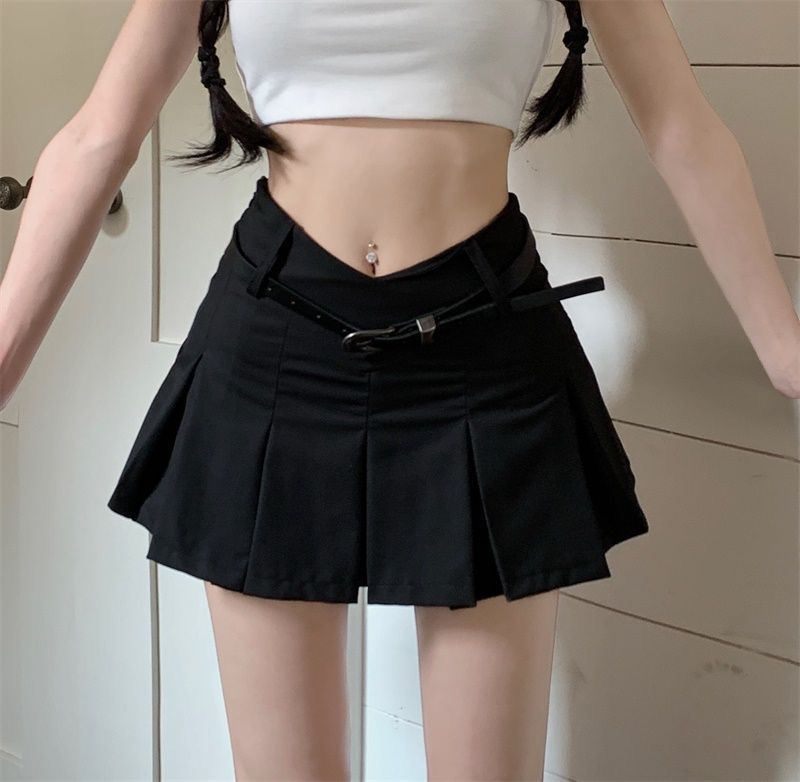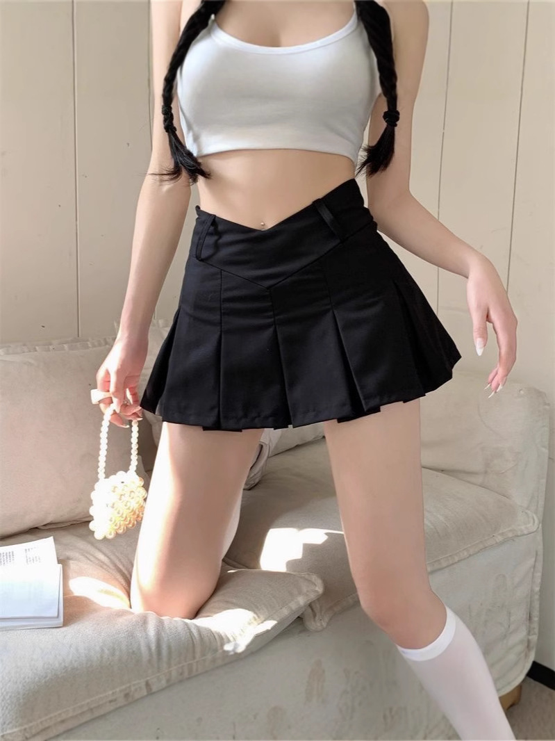 컬리지 스타일 핫걸 섹시 V 허리 미니 스커트 노출 방지 A라인 스커트 슬림핏 로우 웨이스트 퓨어 디자이어 플리츠 스커트스토어 가기