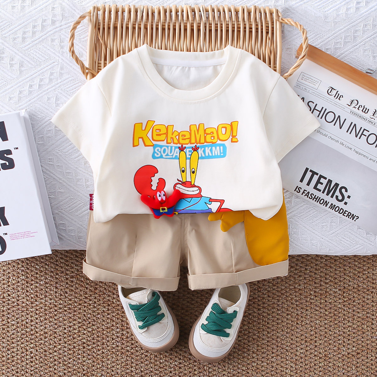 2025년 여름 새로운 스타일 만화 캐주얼 슈트 프린트 - 크랩 보스 반팔 핸섬 슈트스토어 가기