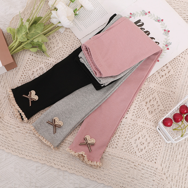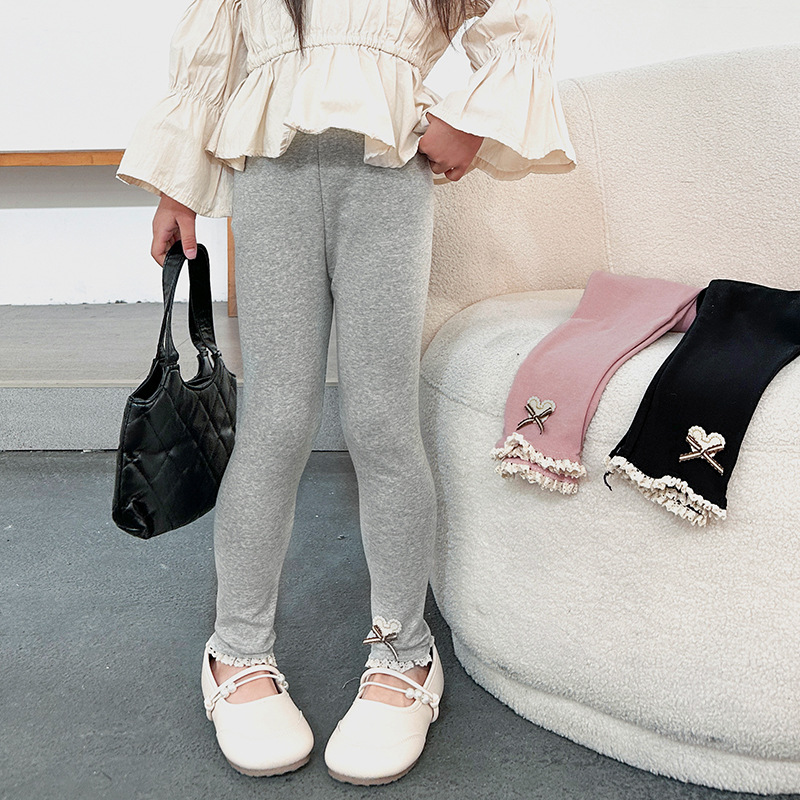 여자 레깅스 코튼 한국 스타일 샤넬 스타일 귀여운 바지 어린이 외부 착용 슬림핏 높은 스트레치 소녀 바지스토어 가기