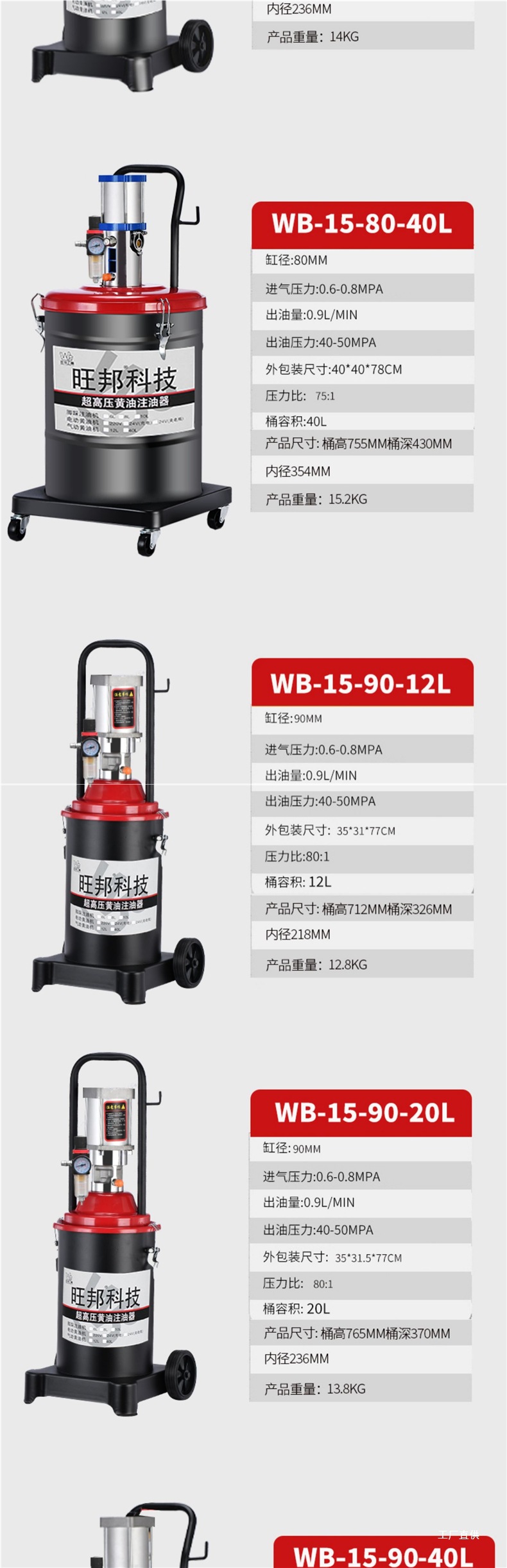 Wangbang 공압 고압 대형 펌프 헤드 자동 그리스 기계 유물 오일 주입 기계 12L35 리터 40 버터 구매스토어 가기