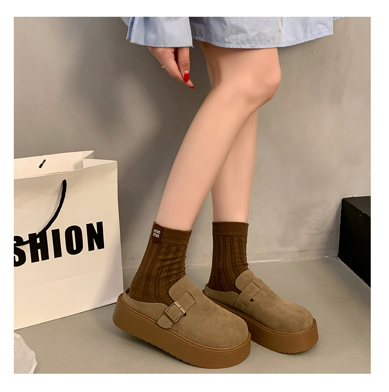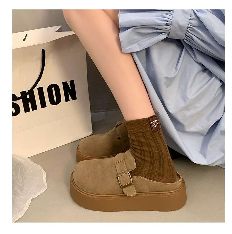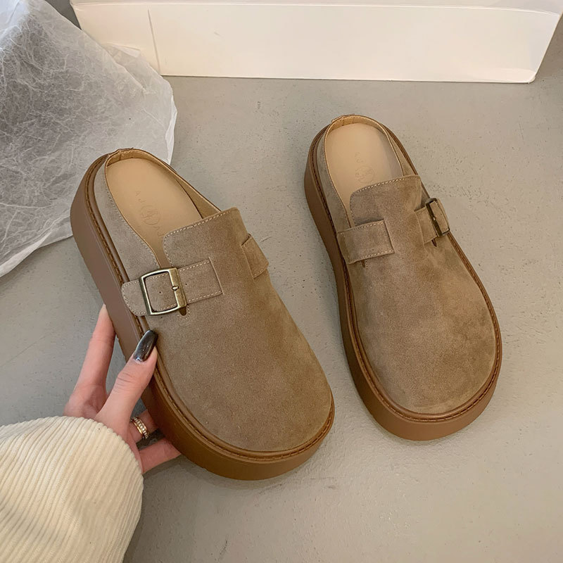 Bocken 신발 내마모성 Bocken 신발 여성 신발 외부 착용 2025 봄과 가을 새로운 두꺼운 유일한 게으른 여성 Baotou 슬리퍼
