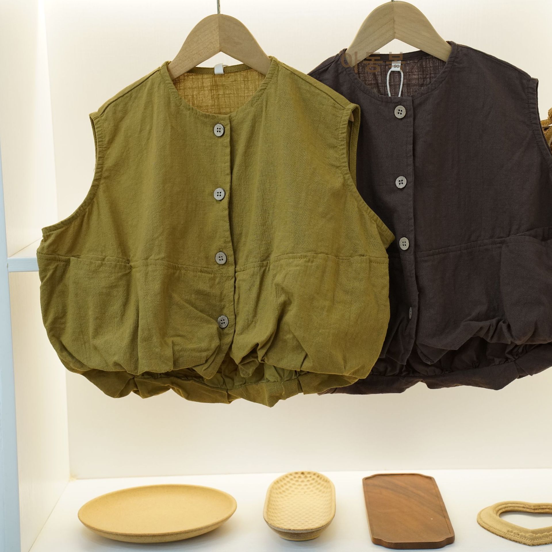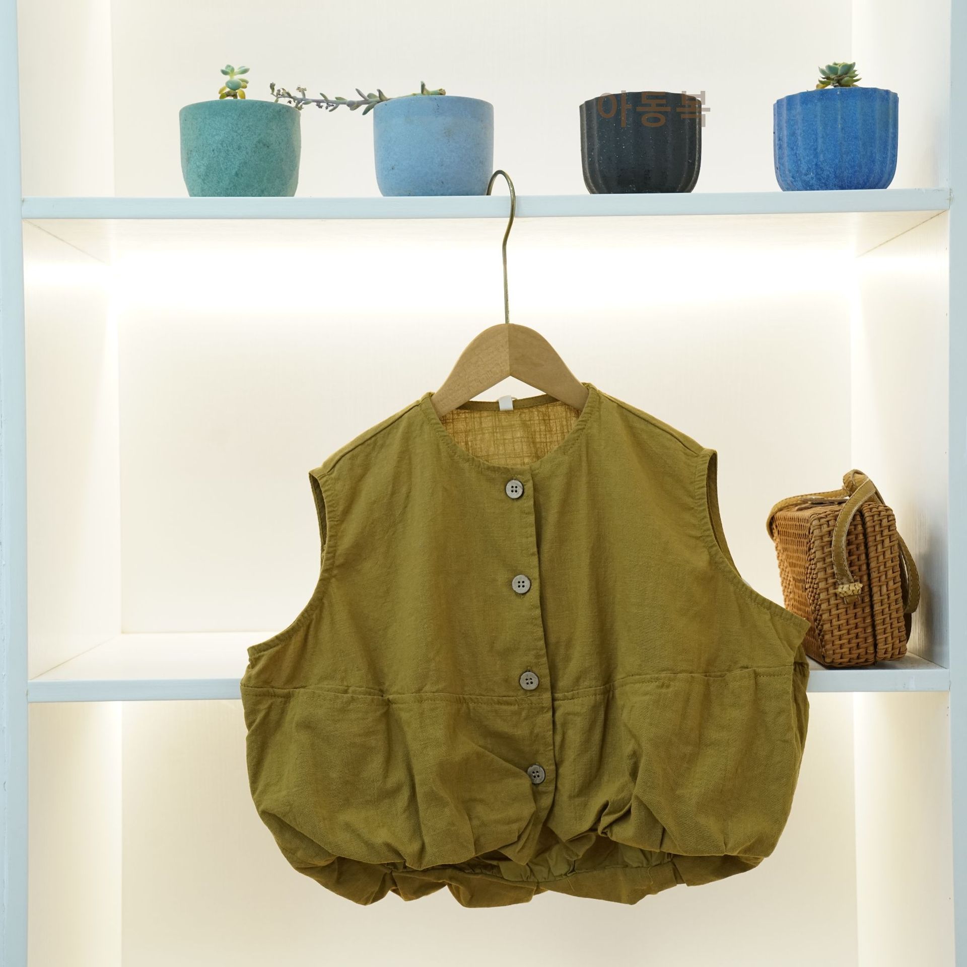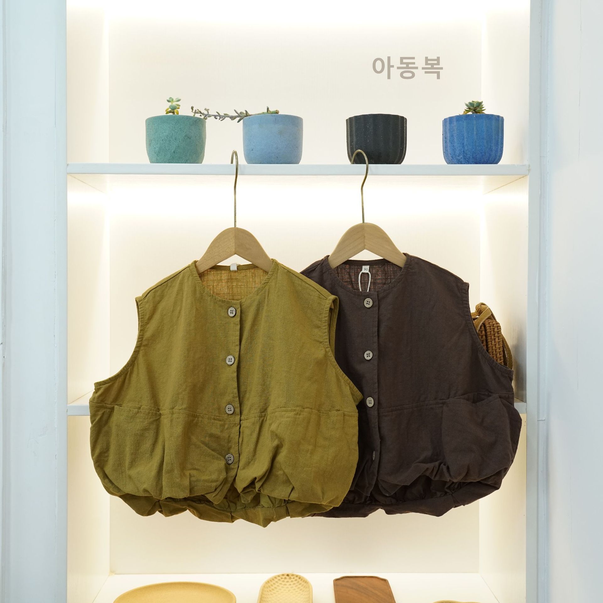 어린이 조끼 2025 봄 새 도착 소년 한국 스타일 단색 싱글 가슴 유행 소녀 탑 패션스토어 가기