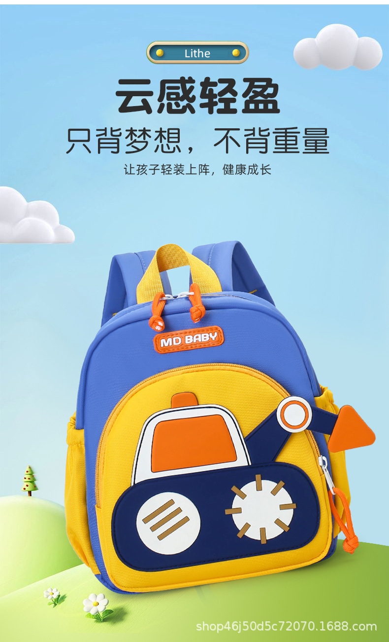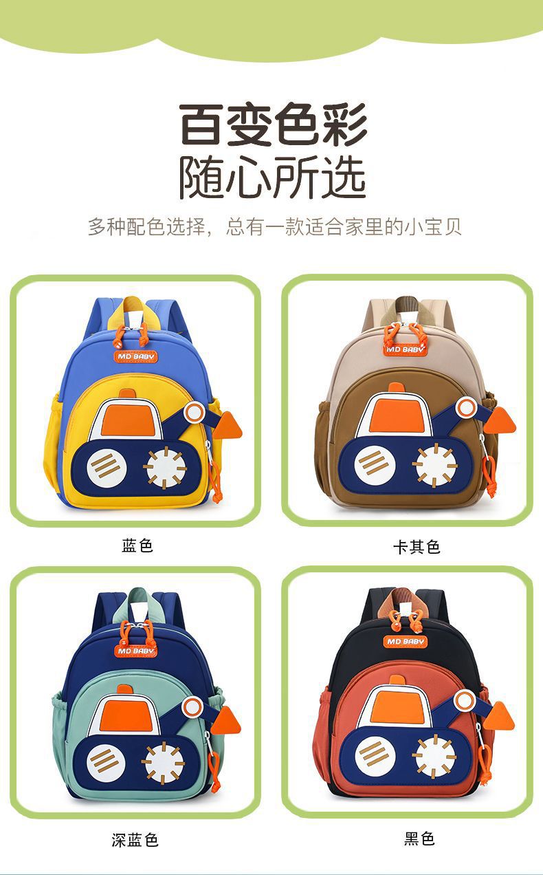 유치원 가방 아기 소년 배낭 1-3 세 학교 배낭 자동차 굴삭기 어린이 만화스토어 가기