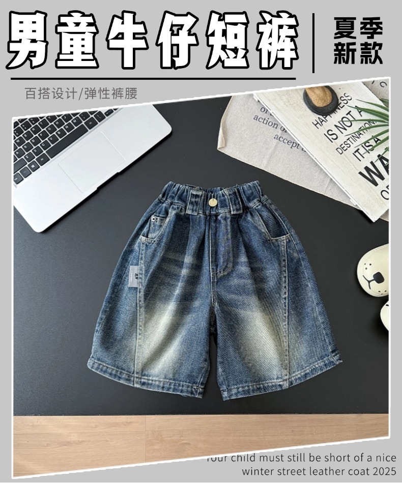 어린이 데님 반바지 2025 여름 새 도착 한국식 레트로 5 점 바지 중장 바지 어린이 트렌디 브랜드 바지스토어 가기