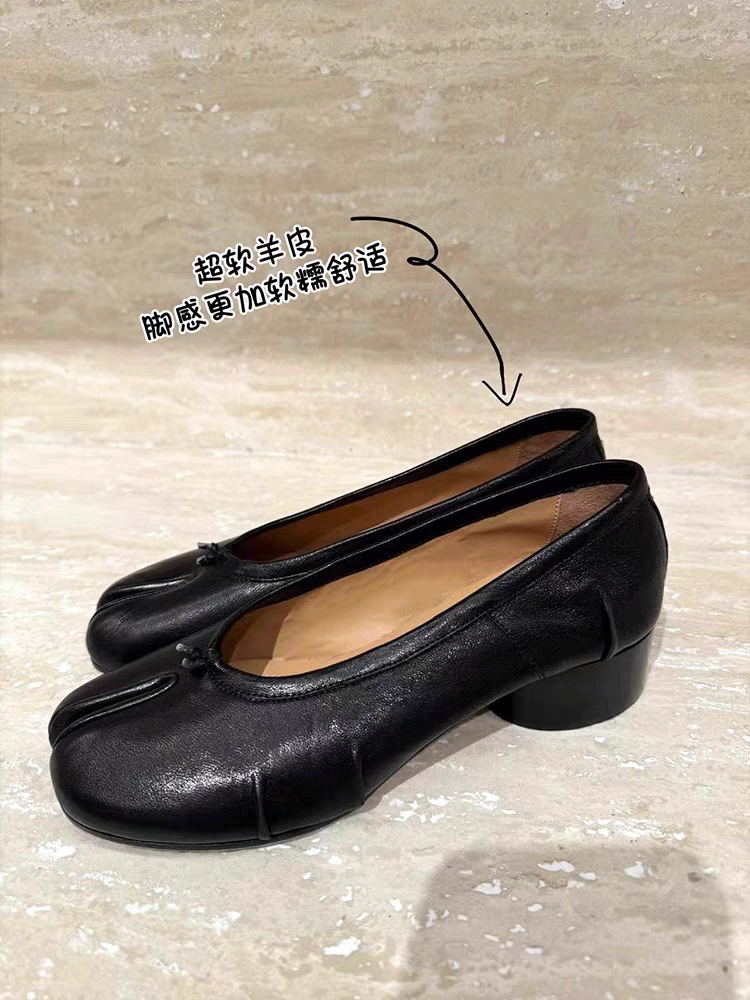 주름진 스플릿 발가락 신발 여성의 2025 년 봄 새로운 스타일 돼지 트로터 빈티지 발레 신발 한 발 낮은 입 다용도 미드 힐 싱글 레이어 신발