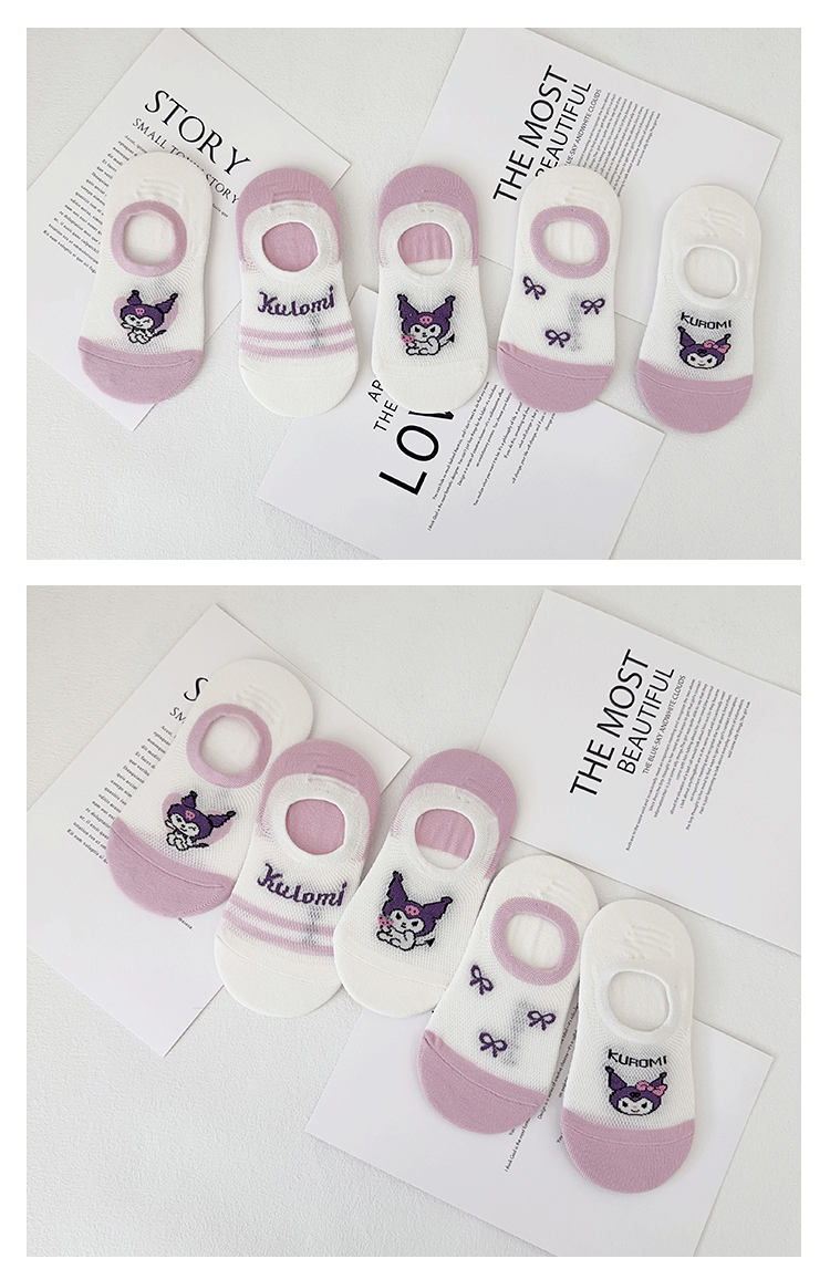 이족 쌍 어린이 양말 여름 메쉬 만화 쿨로 미 보트 양말 빗 코튼 한국 스타일 소녀 얕은 입 보이지 않는 양말