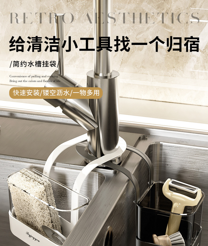 물 배수 바구니 걸이 가방 수도꼭지 식기 세척 스폰지 보관함 주방 용품 싱크대 펀치없는 걸이 바구니