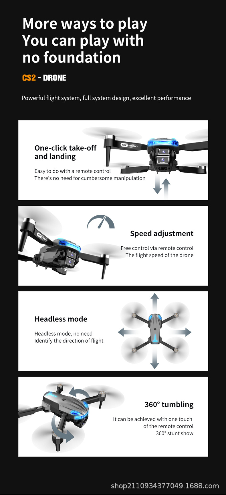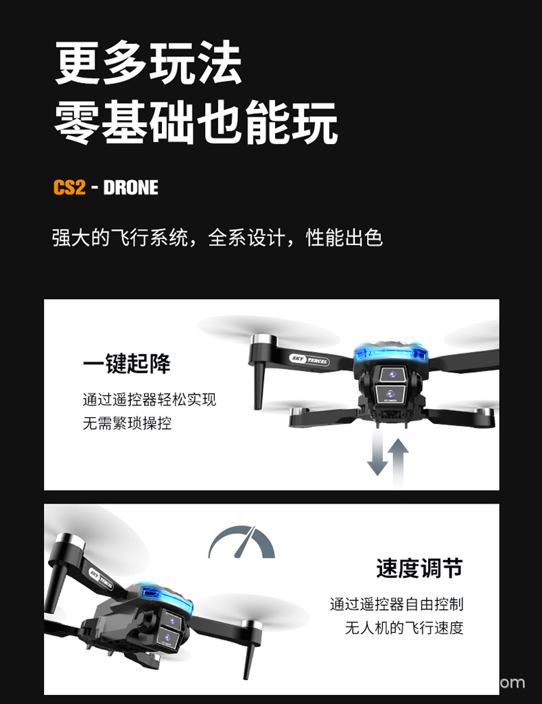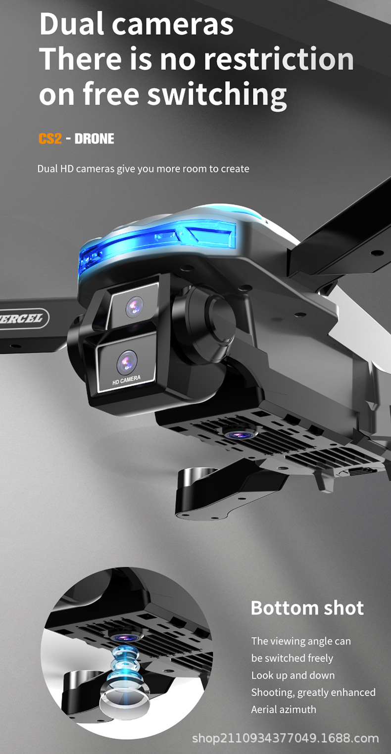 국경 간 CS-2 브러시리스 고화질 항공 사진 광학 흐름 드론 접이식 쿼드 콥터 원격 제어 항공기 대외 무역 장난감스토어 가기