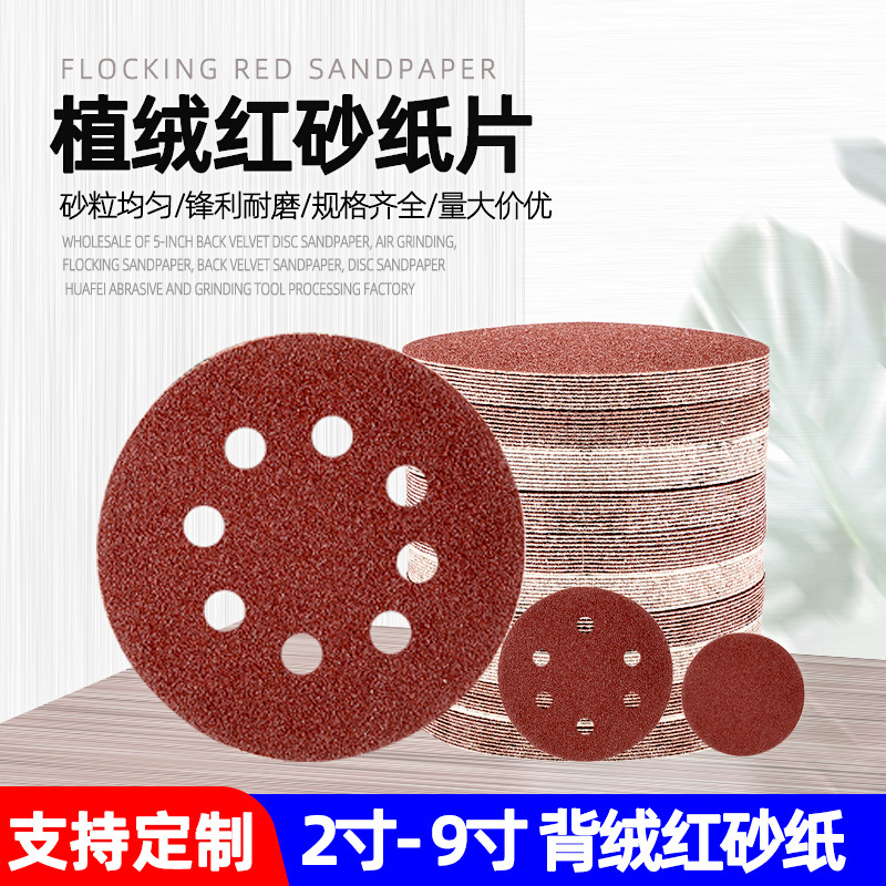 플록 레드 사포 시트 벨벳 사포 9인치 6홀 사포 5inch 벨벳 디스크 건식 사포
