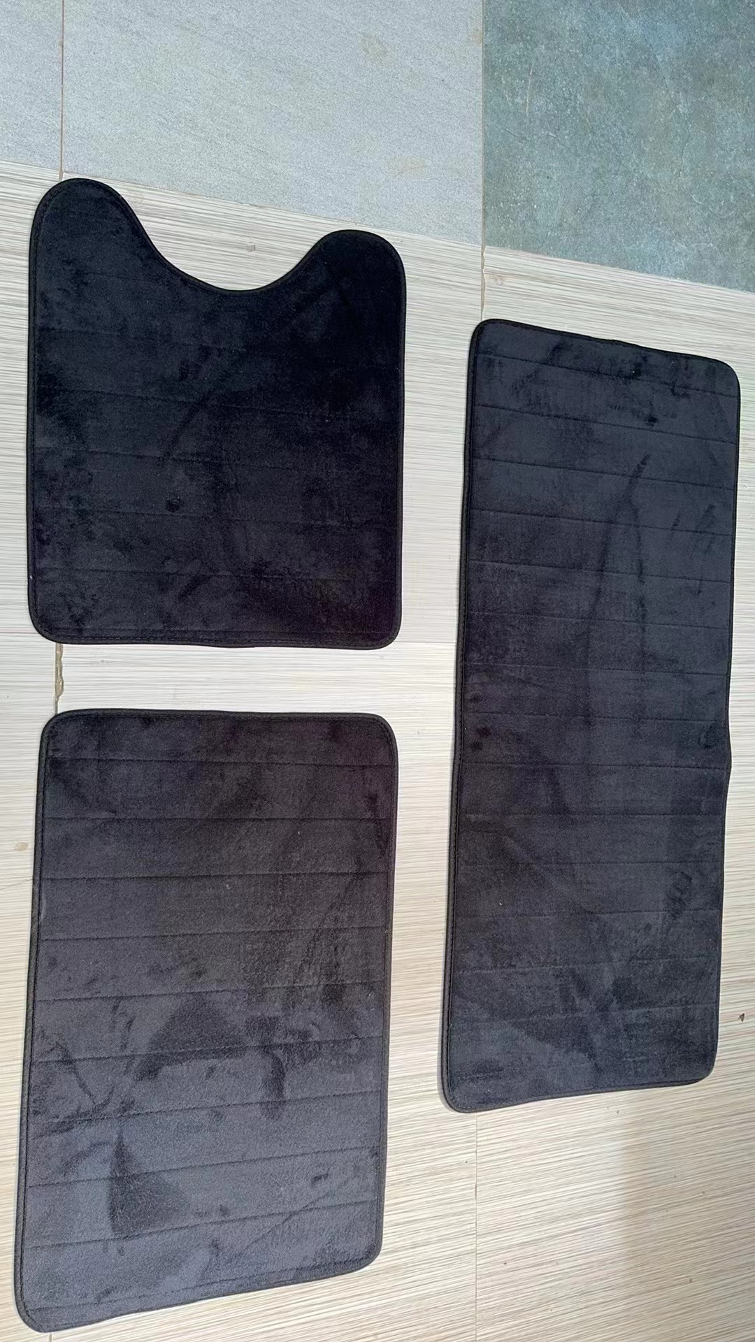 가정용 단색 두꺼운 퀼트 미끄럼 방지 발 패드, 흡수성, 내마모성 및 관리가 쉬운 욕실 화장실 3피스 바닥 매트