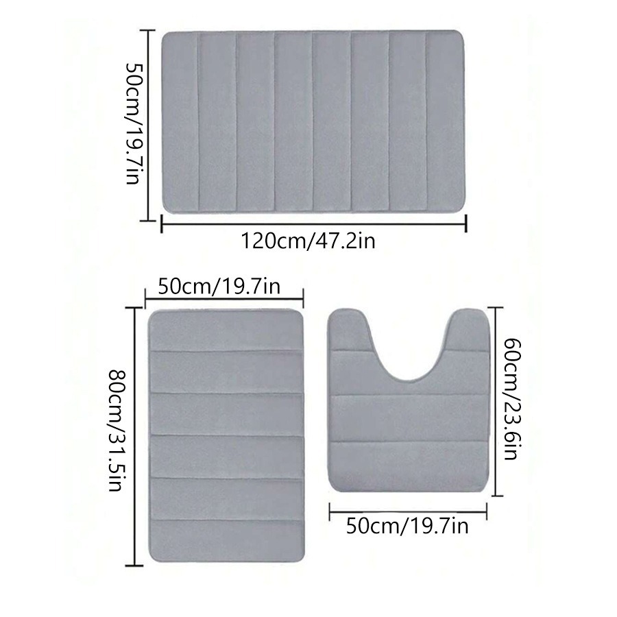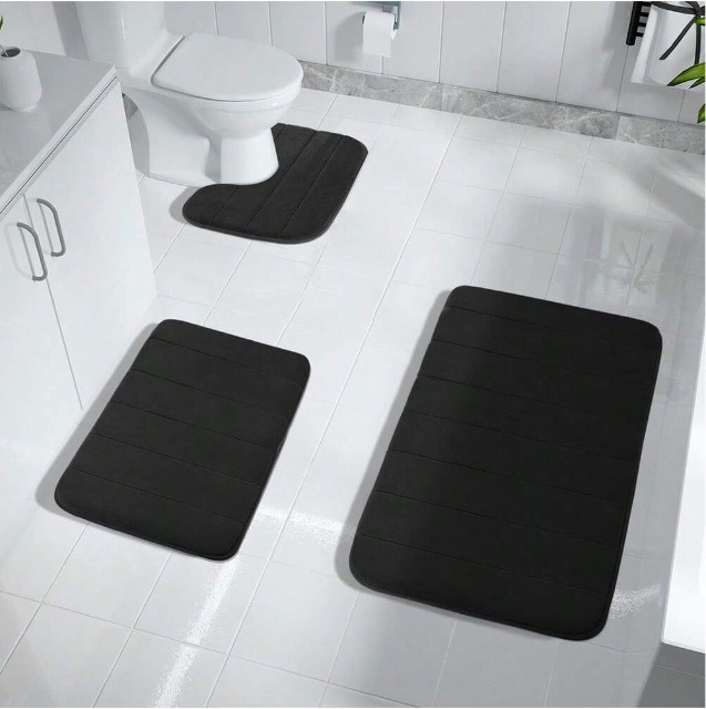 가정용 단색 두꺼운 퀼트 미끄럼 방지 발 패드, 흡수성, 내마모성 및 관리가 쉬운 욕실 화장실 3피스 바닥 매트스토어 가기