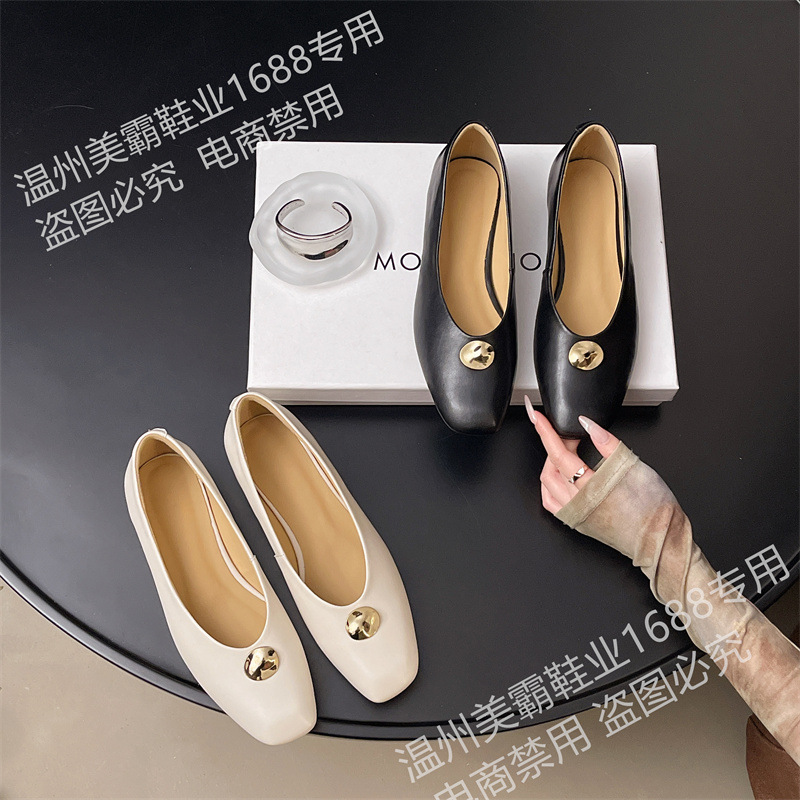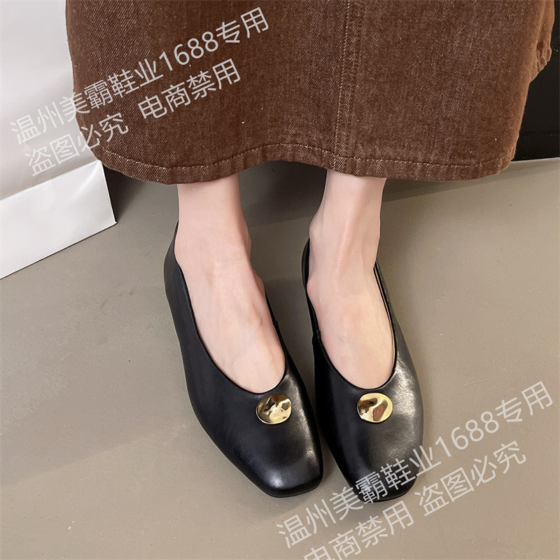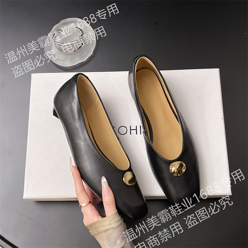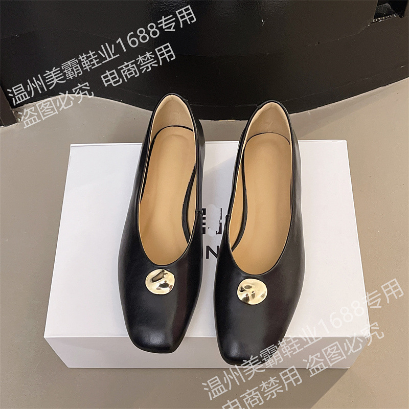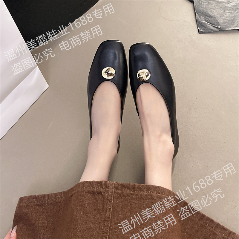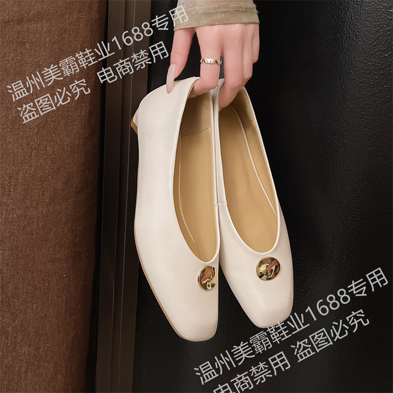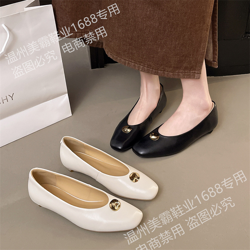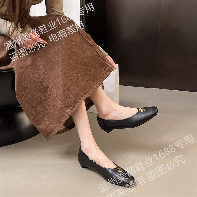 프랑스 우아한 금속 버클 우아한 작은 신발 여성의 2025 봄과 여름 새로운 부드러운 여성의 작은 가죽 신발스토어 가기