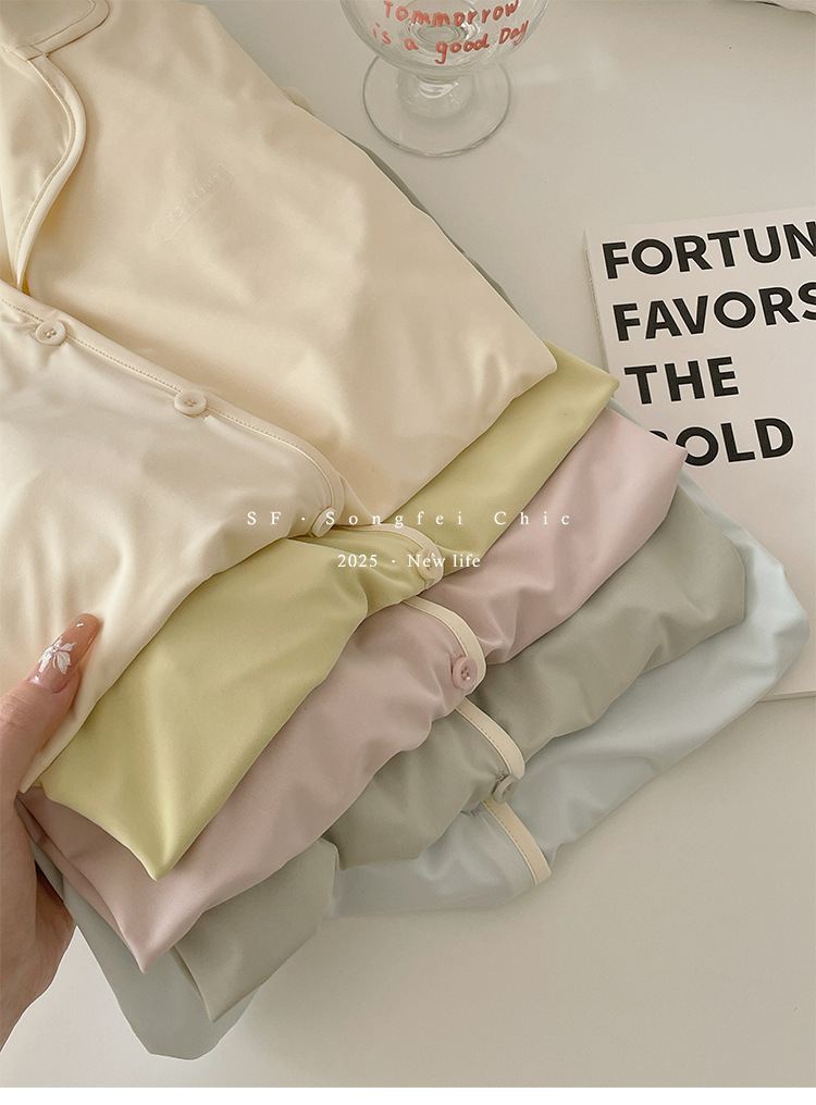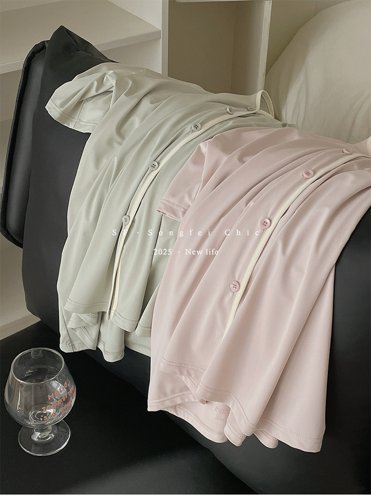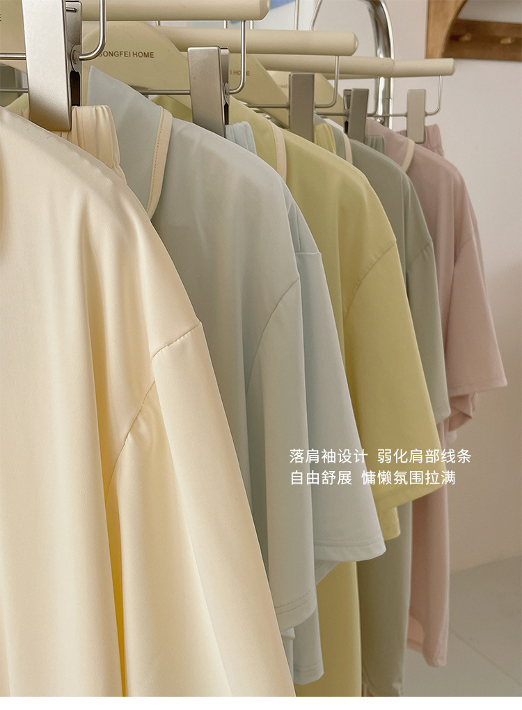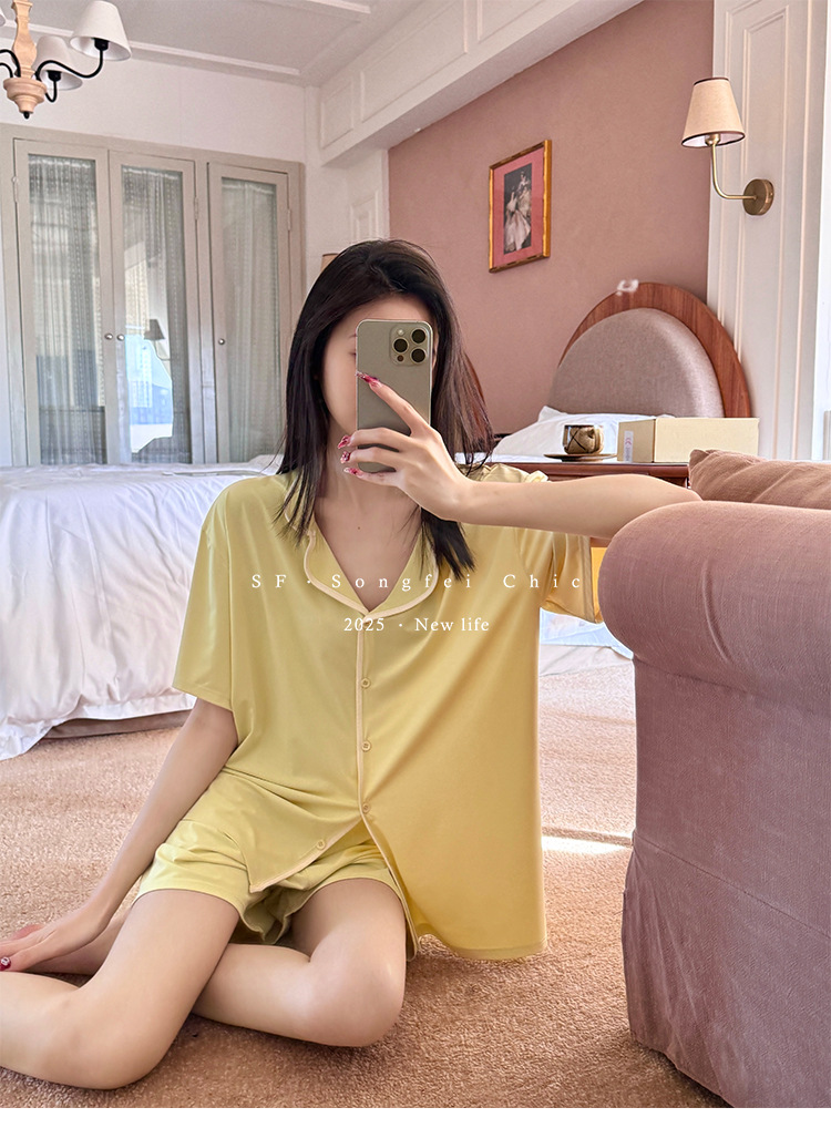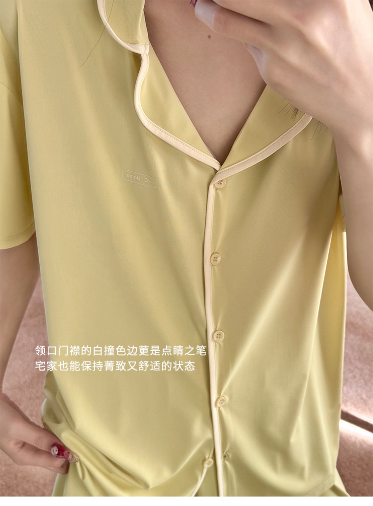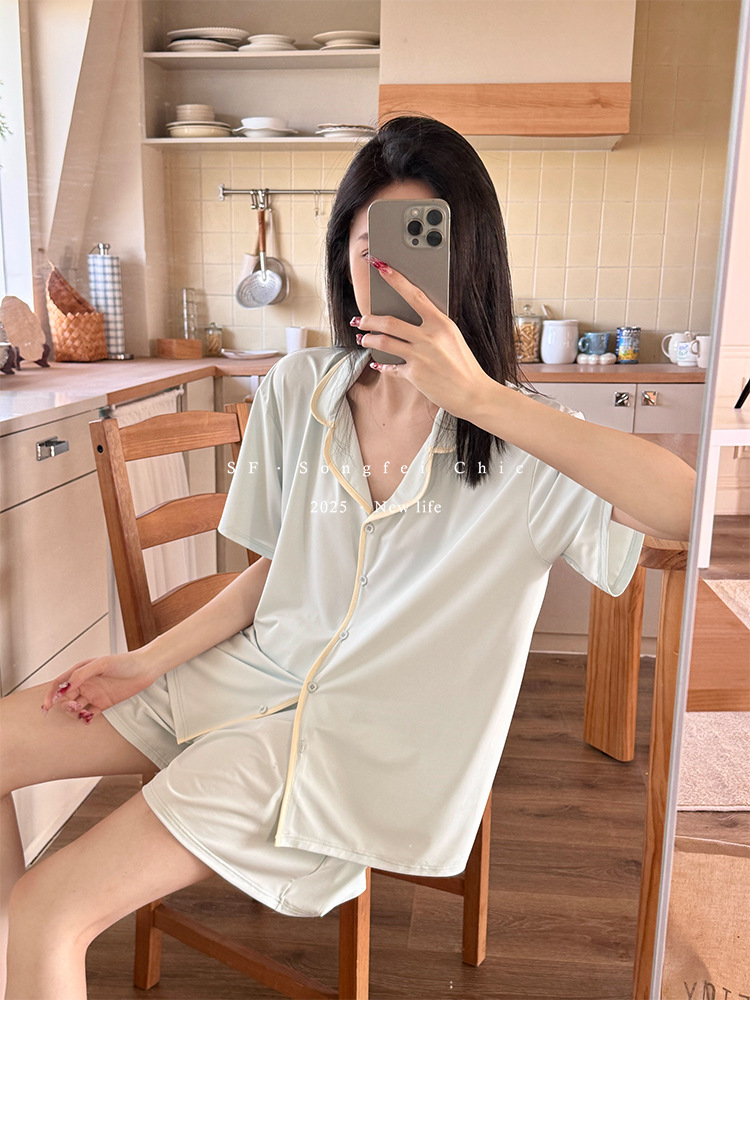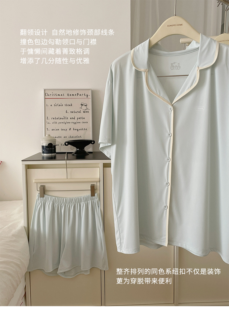 여름 새로운 대비 카디건 아이스 스킨 파자마 세트 느슨한 반팔 반바지 얇은 홈 의류 여성용 투피스 세트