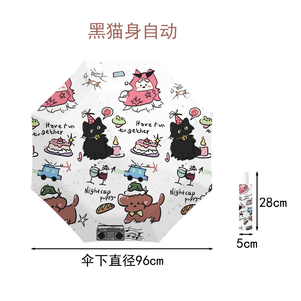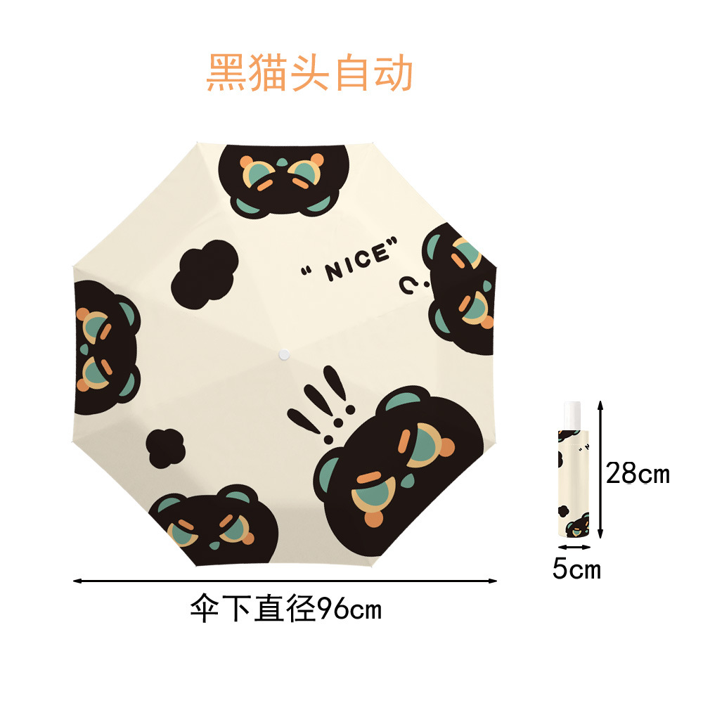 • 8본 만화 써니우산 풀커버 - 검은 고양이 머리 [자동]
