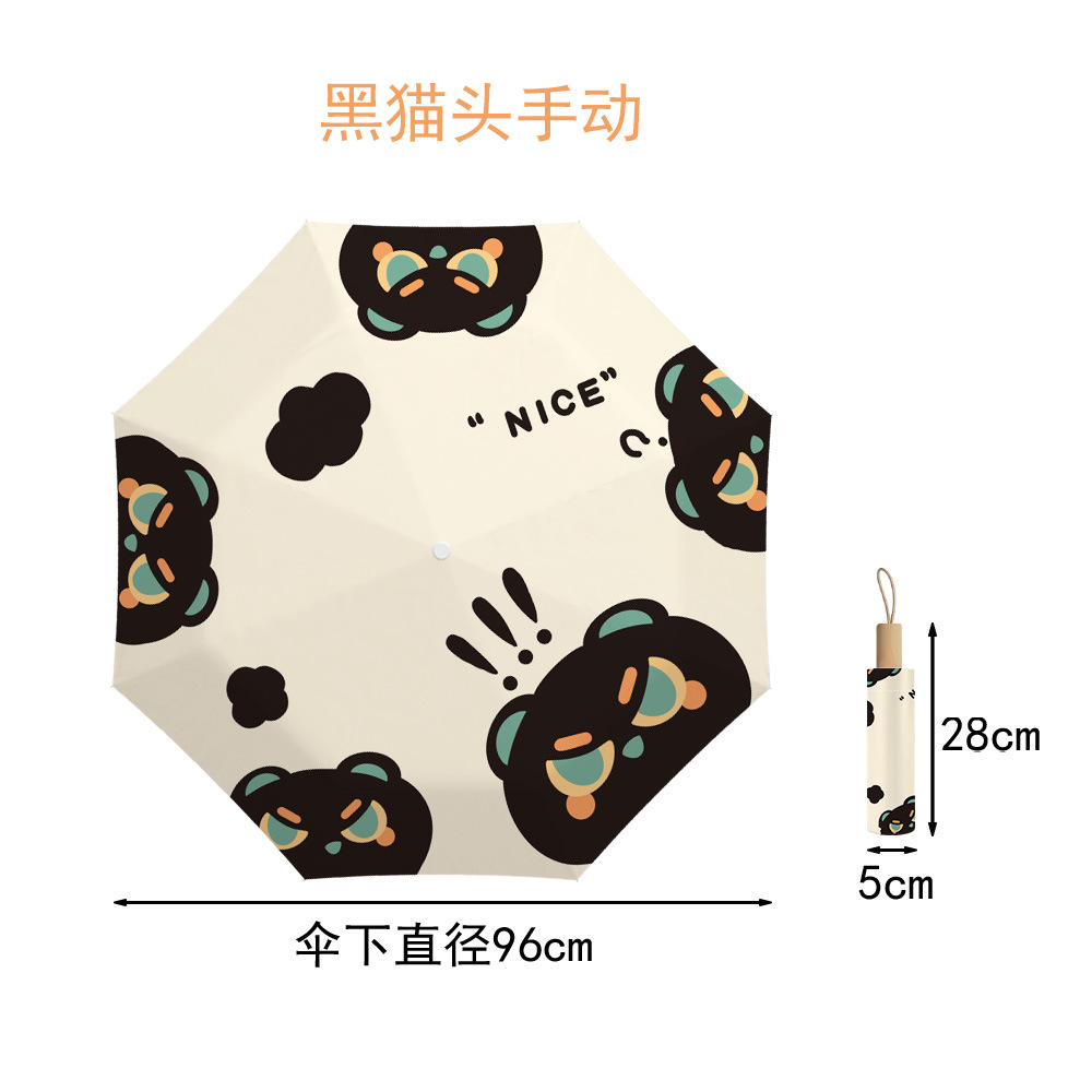 • 8본 만화 써니우산 풀커버 - 검은 고양이 머리 [수동]