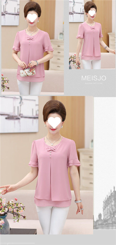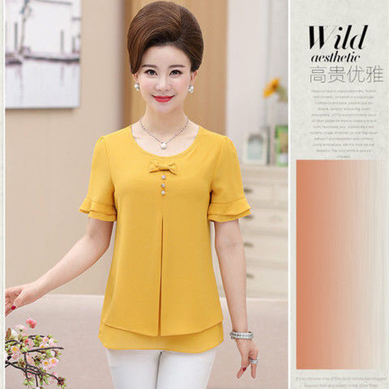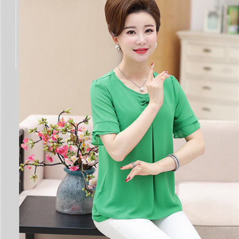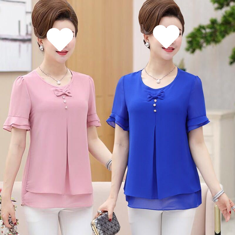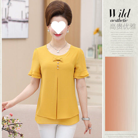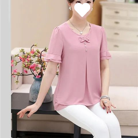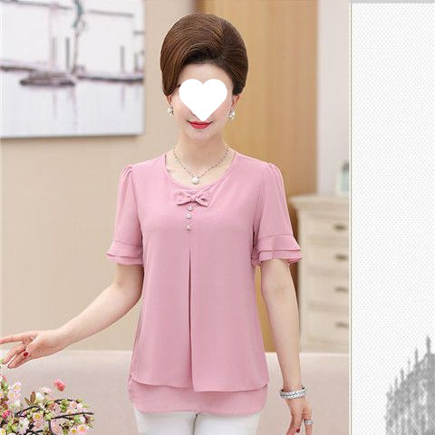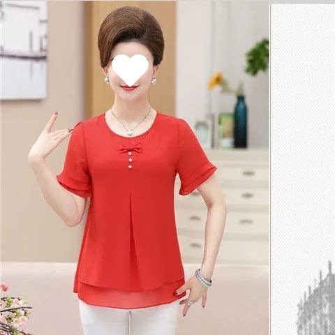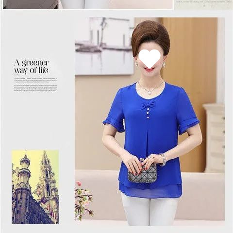 어머니의 여름 중년 여성 톱 플러스 사이즈 새 여름 중년 여성 느슨한 반팔 티셔츠 시폰 셔츠