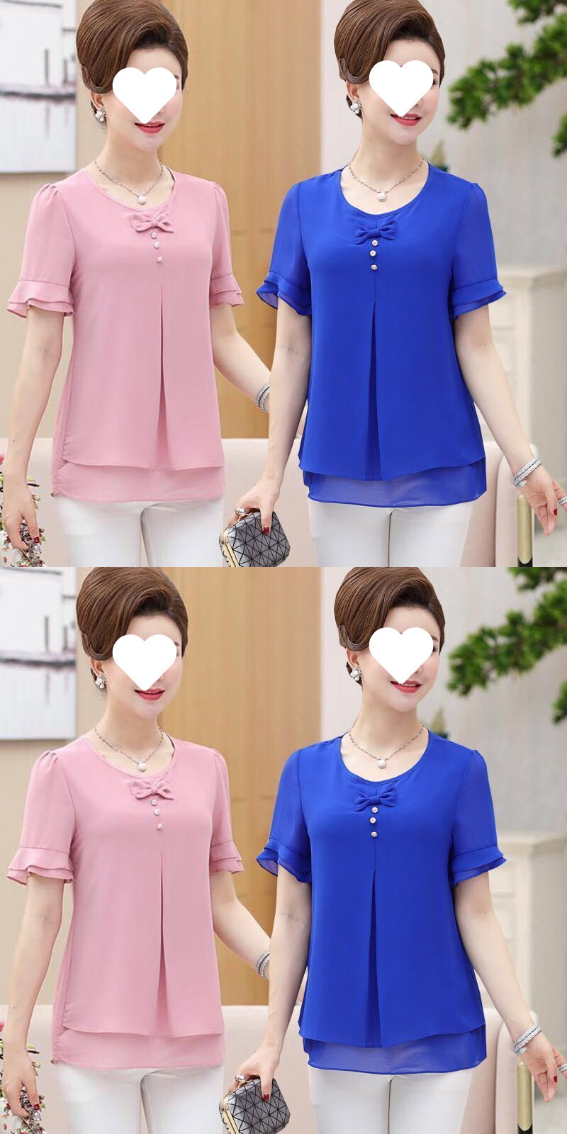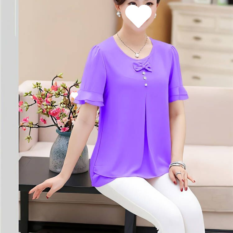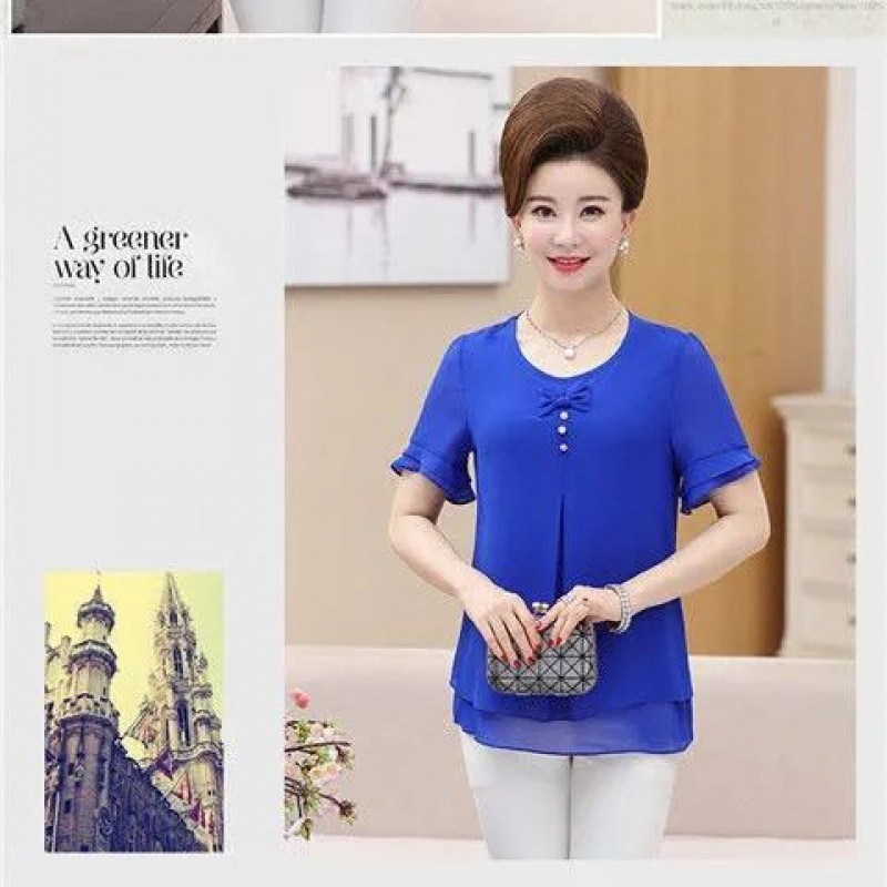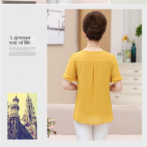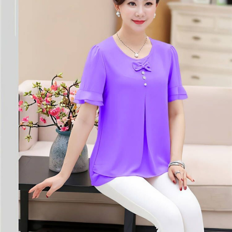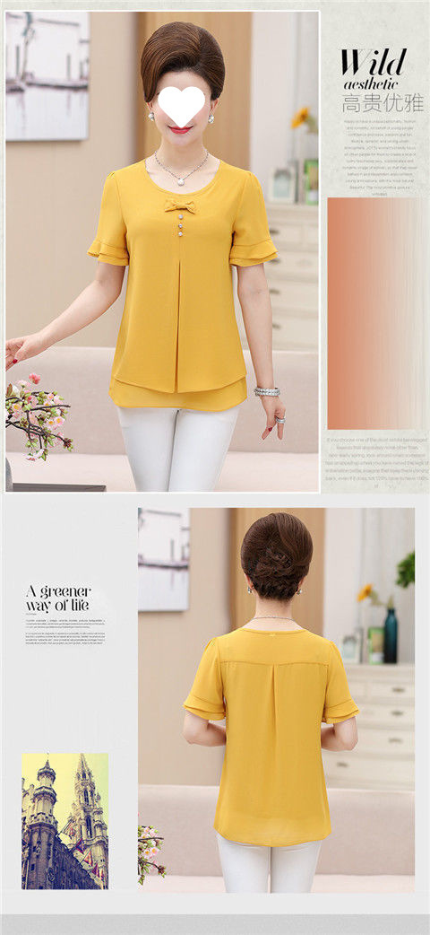 어머니의 여름 중년 여성 톱 플러스 사이즈 새 여름 중년 여성 느슨한 반팔 티셔츠 시폰 셔츠