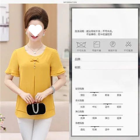 어머니의 여름 중년 여성 톱 플러스 사이즈 새 여름 중년 여성 느슨한 반팔 티셔츠 시폰 셔츠스토어 가기