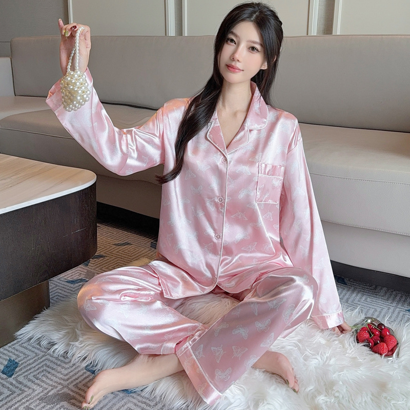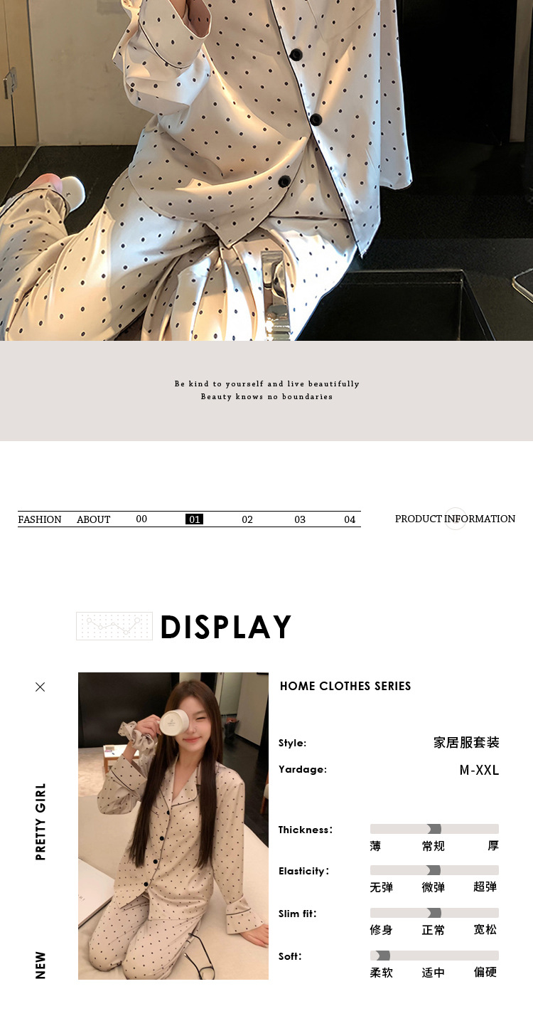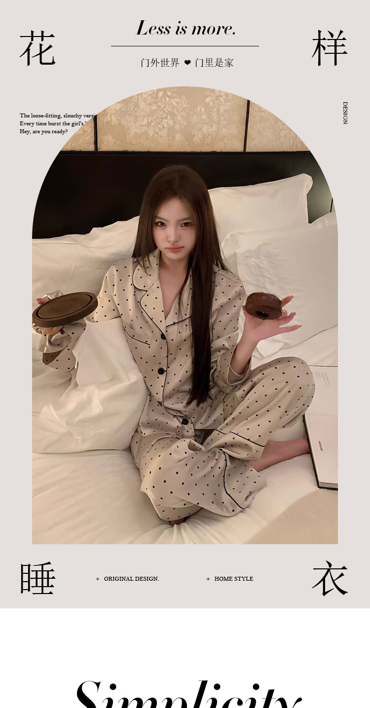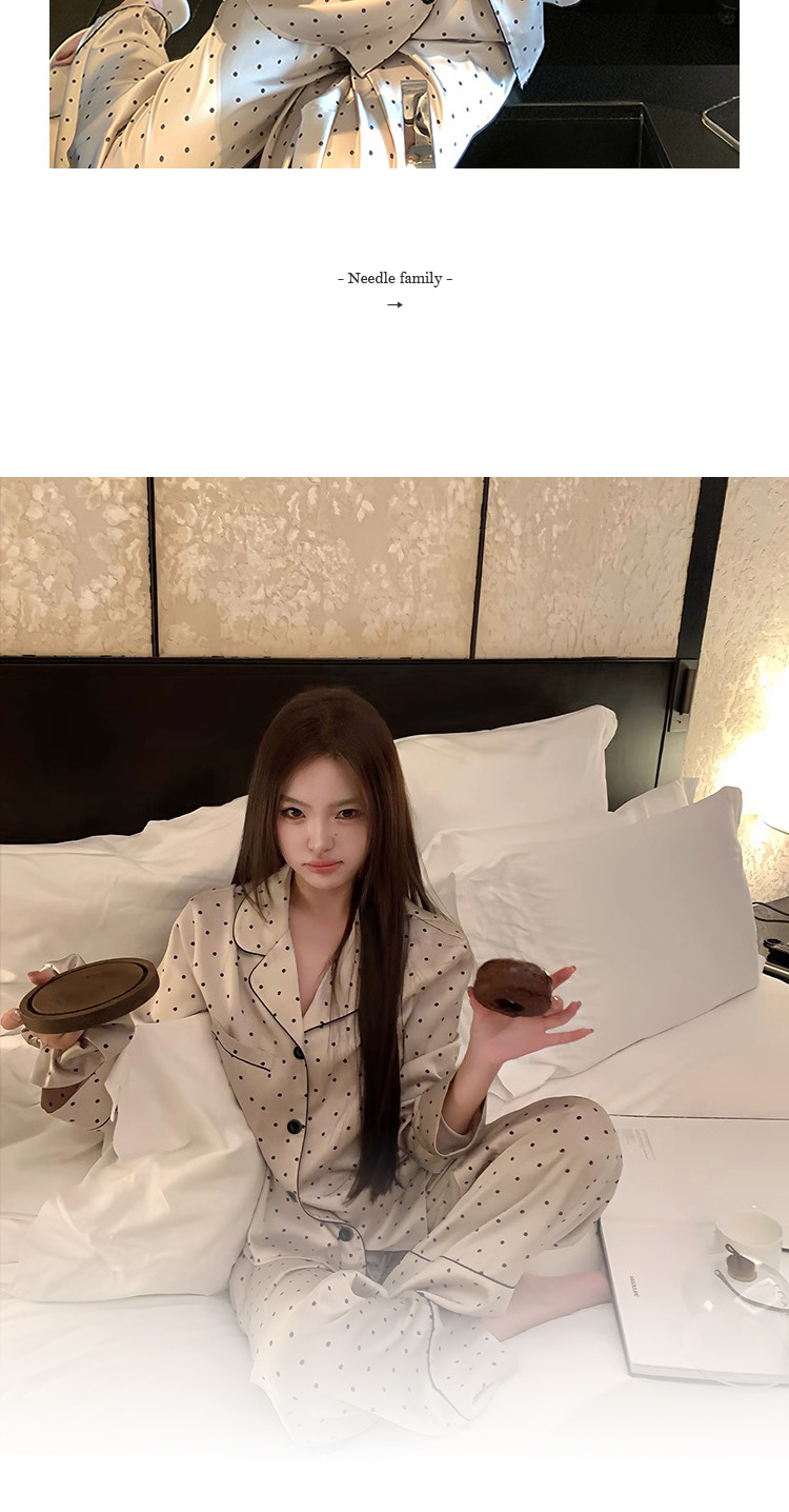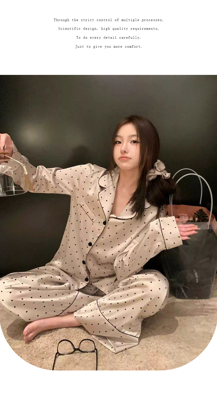 프랑스 나이를 줄이는 잠옷 여성의 봄과 가을 새로운 간단한 웨이브 도트 긴 소매 바지 아이스 실크 홈 의류 패션 세트 도매스토어 가기