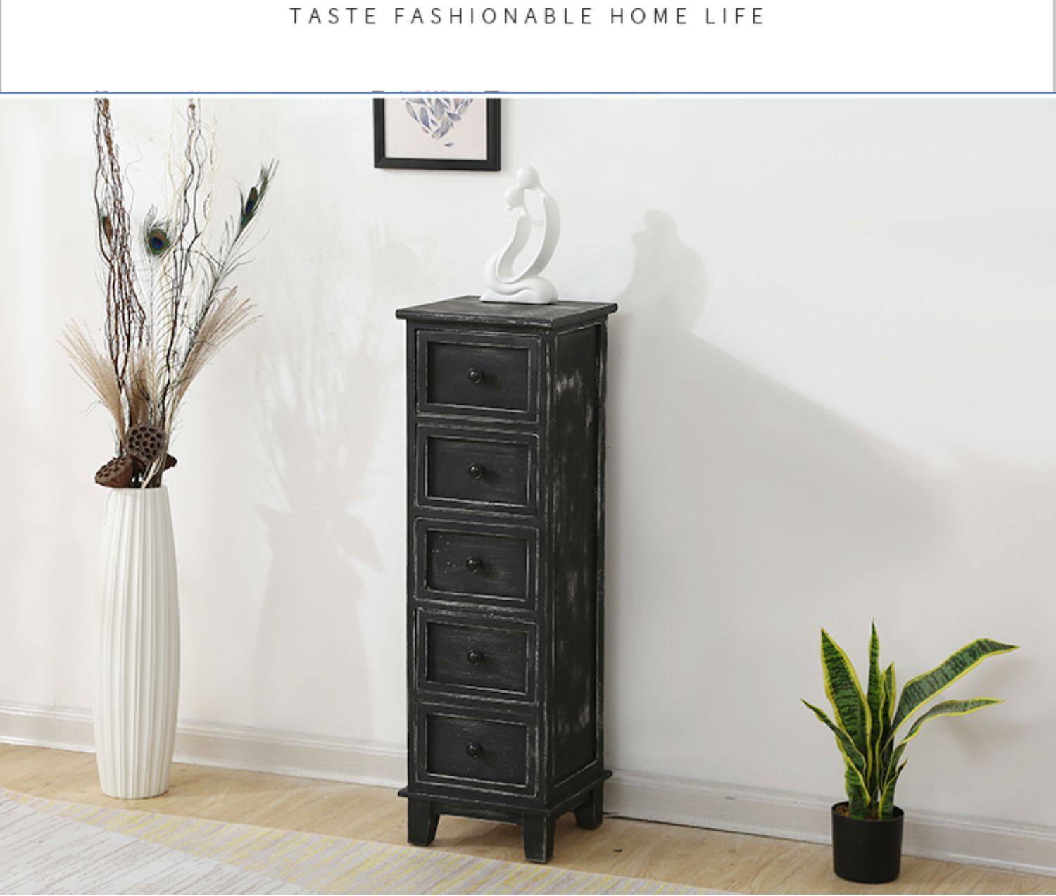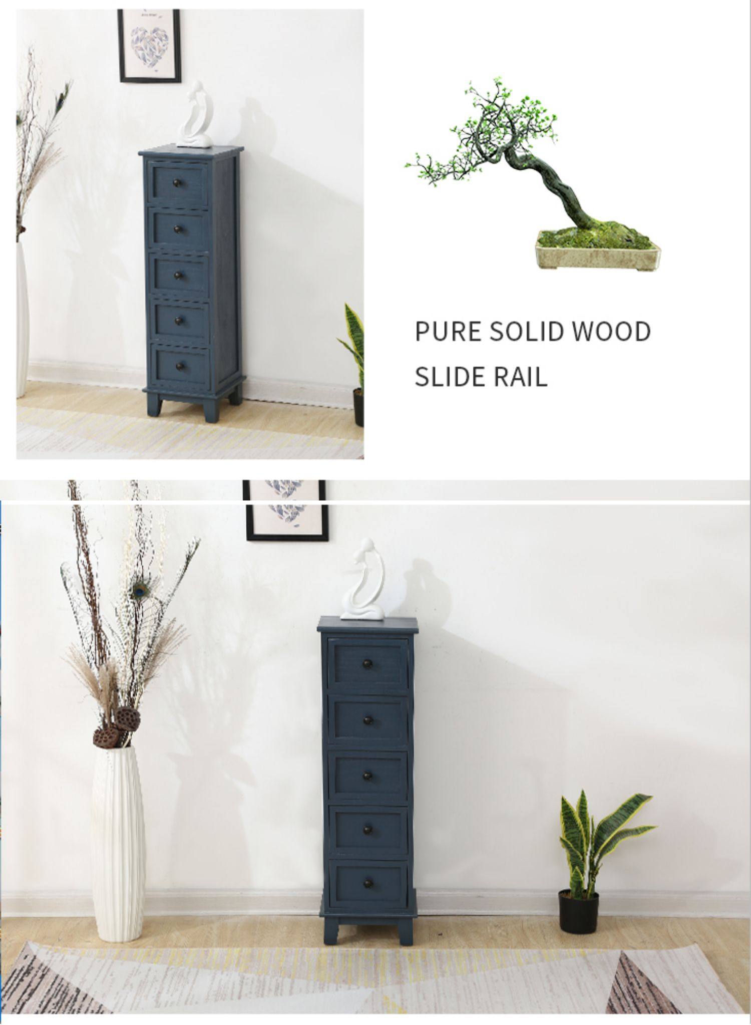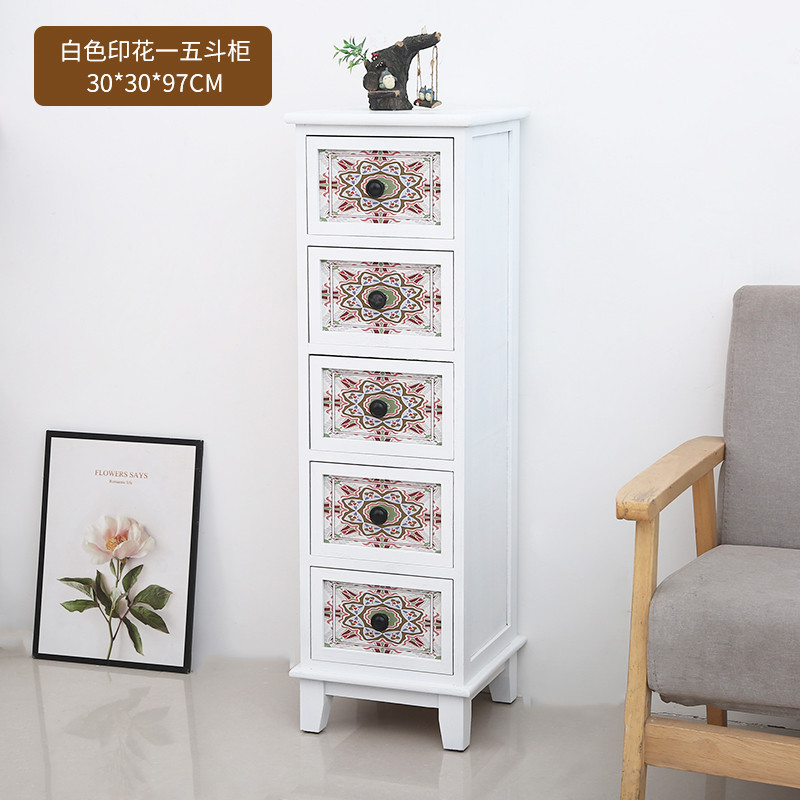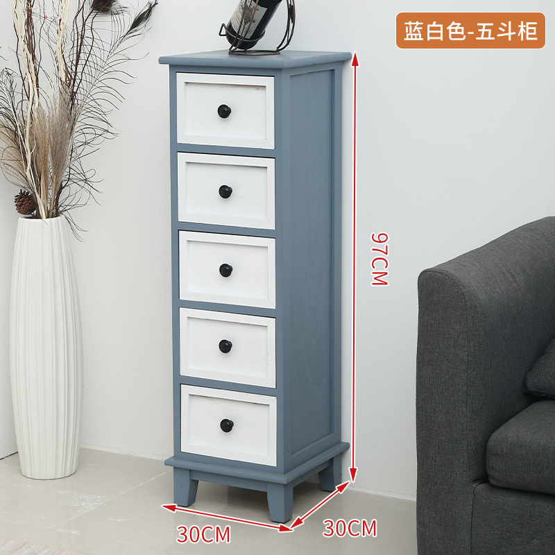 Shengbangrong 신제품 긴 좁은 양동이 캐비닛 솔리드 우드 작은 아파트 양동이 캐비닛 목가적 인 스타일 갭 보관 캐비닛 거실 화이트스토어 가기
