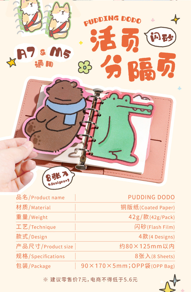 모양의 느슨한 잎 분리기 PUDDING DODO 시리즈 핸드북 내부 페이지 양면 색상 색인에 대한 참고